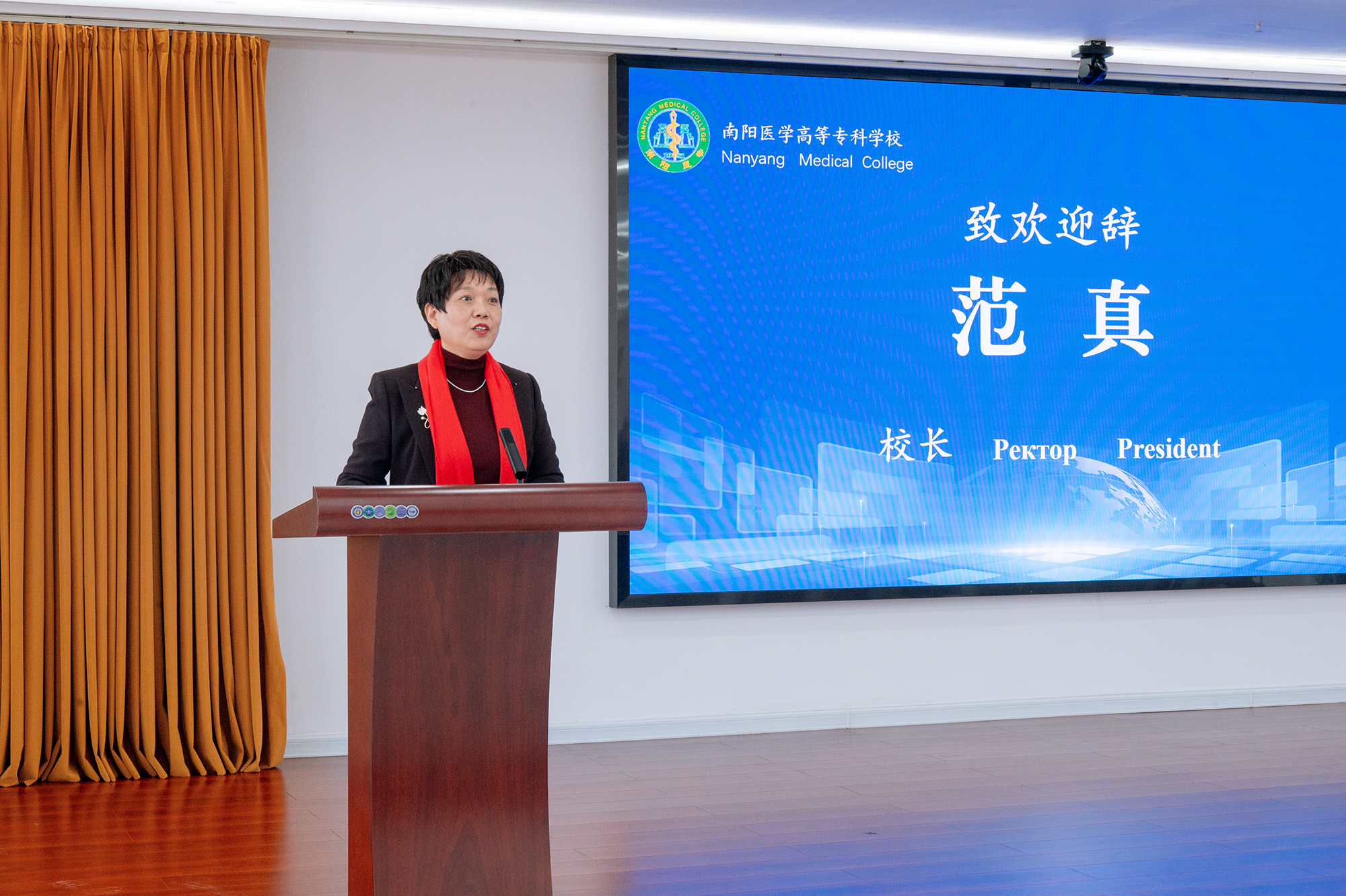 校党委副书记、校长范真对学员们表示欢迎。她指出,中医药在国际健康事业中发挥着重要作用,“仲景工坊”作为南阳医专职教出海工程的特色项目,致力于推动中医适宜技术的传承与国际传播,希望通过此次培训,进一步加强中外文化交流,为全球健康事业贡献力量。