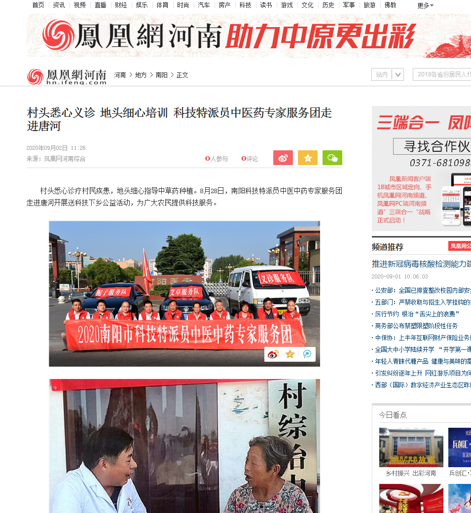 村头悉心诊疗村民疾患,地头细心指导中草药种植。8月28日,南阳科技特派员中医中药专家服务团走进唐河开展送科技下乡公益活动,为广大农民提供科技服务。