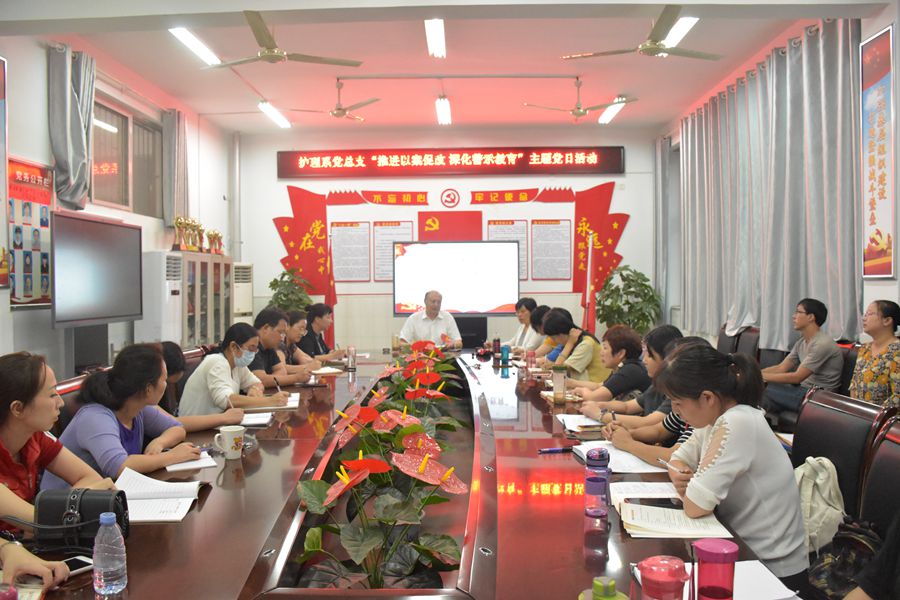 本网讯(文/护理系 李明哲) 2020年9月16日下午,护理系党总支开展了以“推进以案促改,深化警示教育”为主题的党日活动。副校长张胜海和护理系全体党员参加了活动。