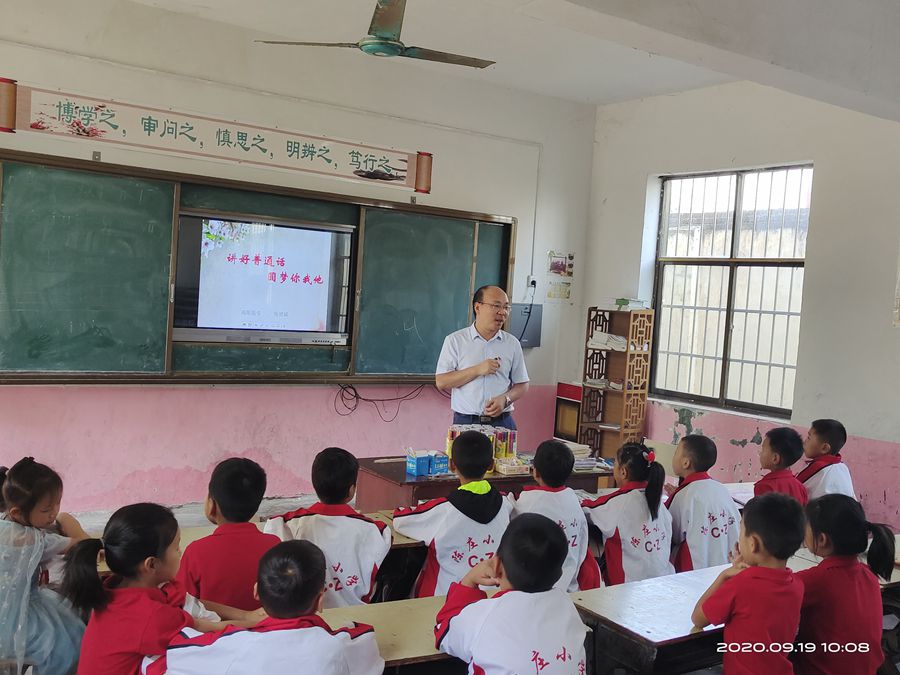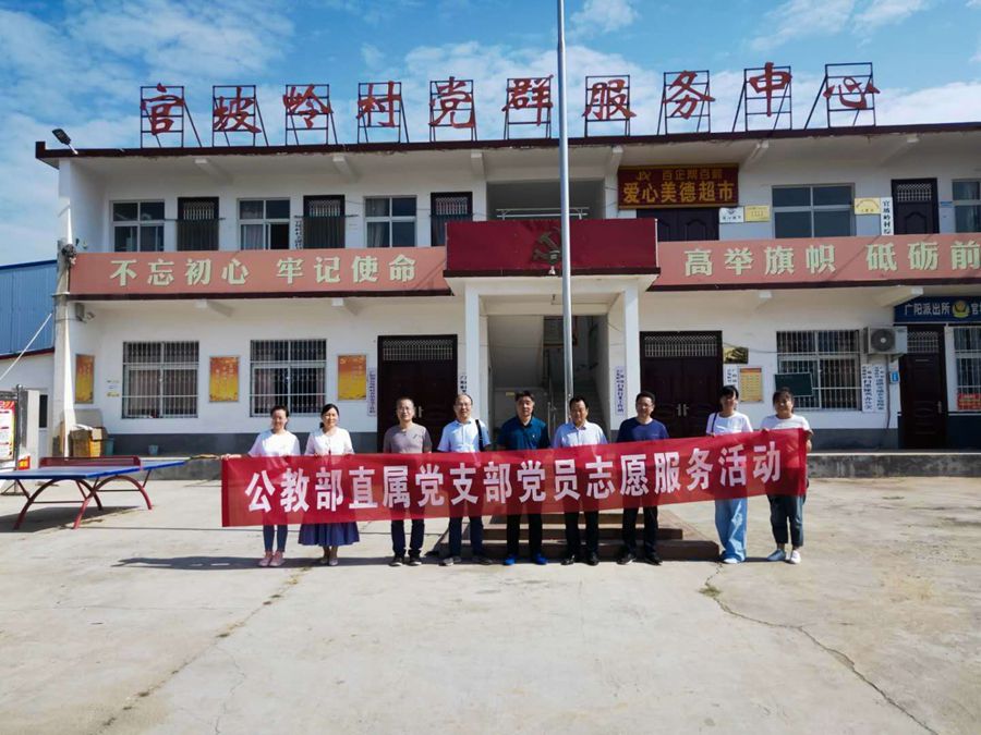 本网讯(文/公教部 李朝)9月19日,适逢第23届全国推广普通话宣传周,公教部直属党支部组织党员代表,赴我校对口扶贫点--方城县广阳镇官坡岭村,开展志愿服务和推普宣传活动。