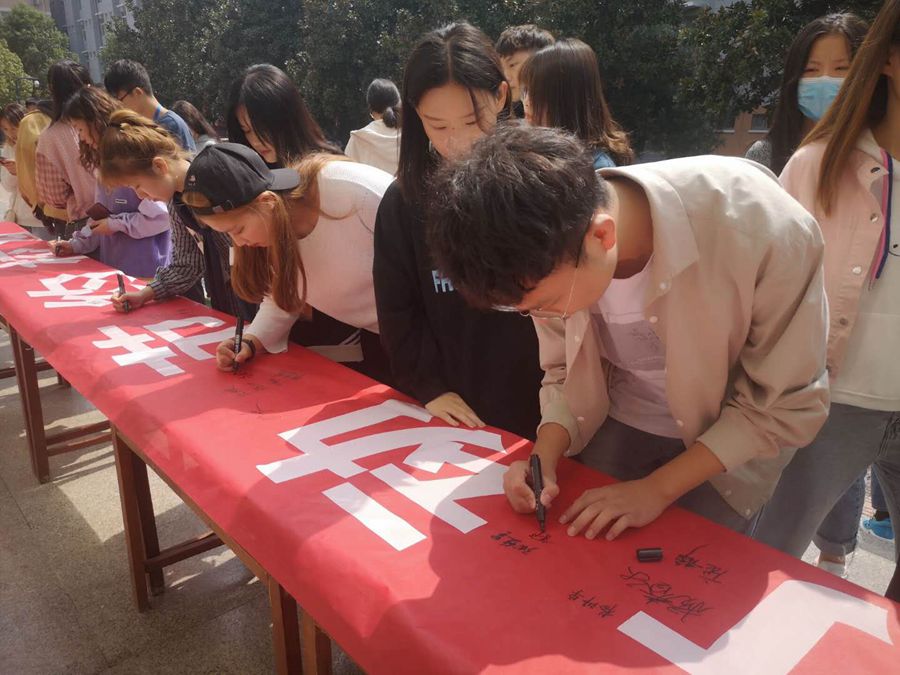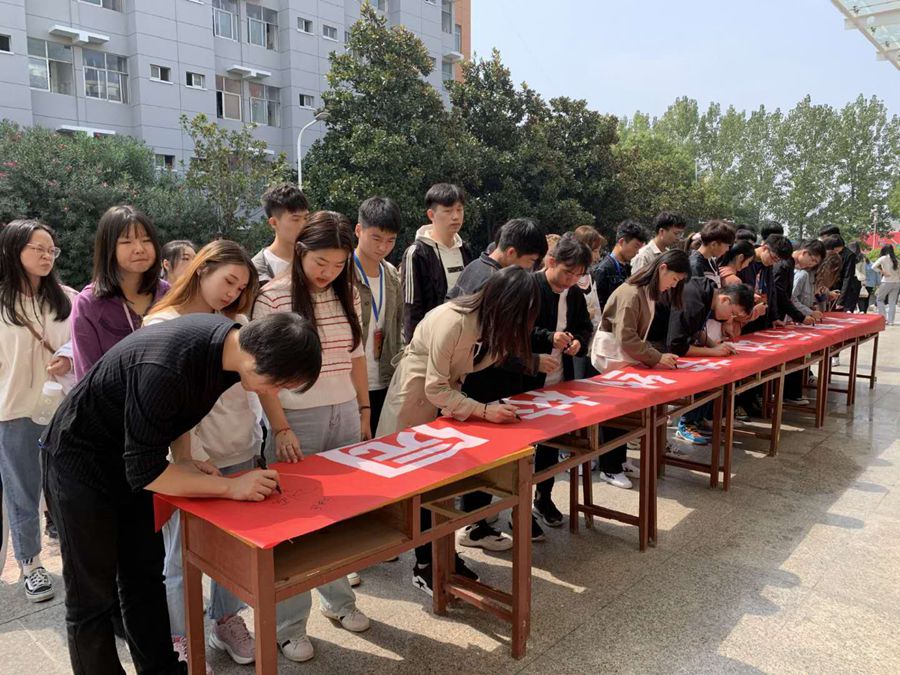 9月23日中午,校学生会在仲景西区餐厅门前举行了“光盘行动 节约校园”签名活动。校学生会学生代表崔林涛向全体同学发出“光盘行动 节约校园”倡议书,号召同学们 “厉行节约、反对浪费”要从我做起,从现在做起。随后,同学们在“光盘行动 节约校园”横幅上签下自己的名字,表达了自己认真践行“光盘行动”,勤俭节约不浪费的决心。