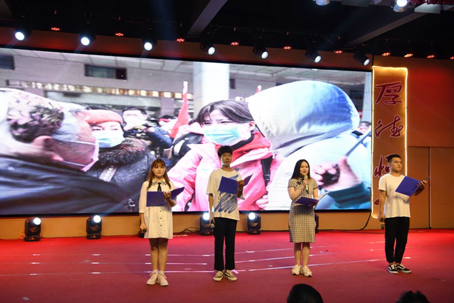 开幕式文艺节目以集体朗诵张仲景《伤寒杂病论序》开始。歌曲《你的答案》唱出了疫情出现之后全国人民的勇敢和坚韧、唱出了每一位平凡又伟大的英雄内心的呐喊;《武术串烧》表演则给观众展示了传统中国功夫之美,生动体现了习武强身报国的中国武术精神;情景剧《疫情中那些可爱的人儿》更是将开幕式推向高潮,观众们从基层村镇干部喊话时捧腹到医学生志愿者诵读日记时的热泪盈眶回看了在疫情最严重时每个平凡人对社会和国家深沉的爱意。随后朗诵、古琴书法表演等节目都迎来观众的阵阵掌声。最后全体参演人员在领唱老师带领下共唱《我和我的祖国》,全场国旗飘扬,气氛达到顶点,同学们又接受了一次深刻的爱国主义教育。全校师生在钉钉和抖音直播平台上观看了此次晚会。
