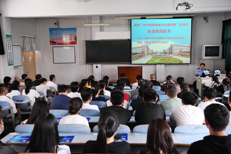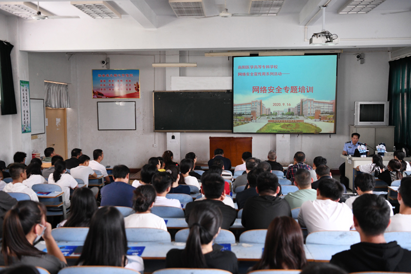 学校网络中心特邀请南阳市公安局网络安全和技术侦查支队陈同平警官来我校作《当前的网络安全形势》专题报告。陈警官首先让大家观看南阳“护网2019”网络攻防实战演习影片,然后针对网络安全的现状、网络安全防范措施、网络安全法律法规、防诈骗等相关内容进行了详细的讲解。结合实际案例进行分析,并与师生进行交流。