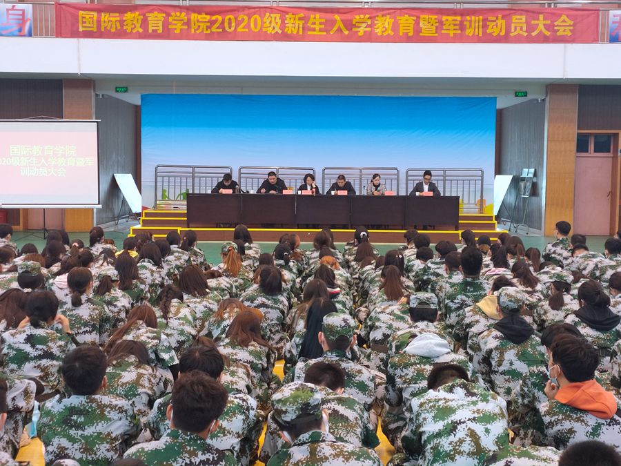 本网讯(文/国际教育学院 张蕊)10月12日下午,国际教育学院在仲景西区体育馆举办2020级新生入学教育暨军训动员大会。学院领导、辅导员和全体新生参加了会议。大会由党总支书记张少羽主持。