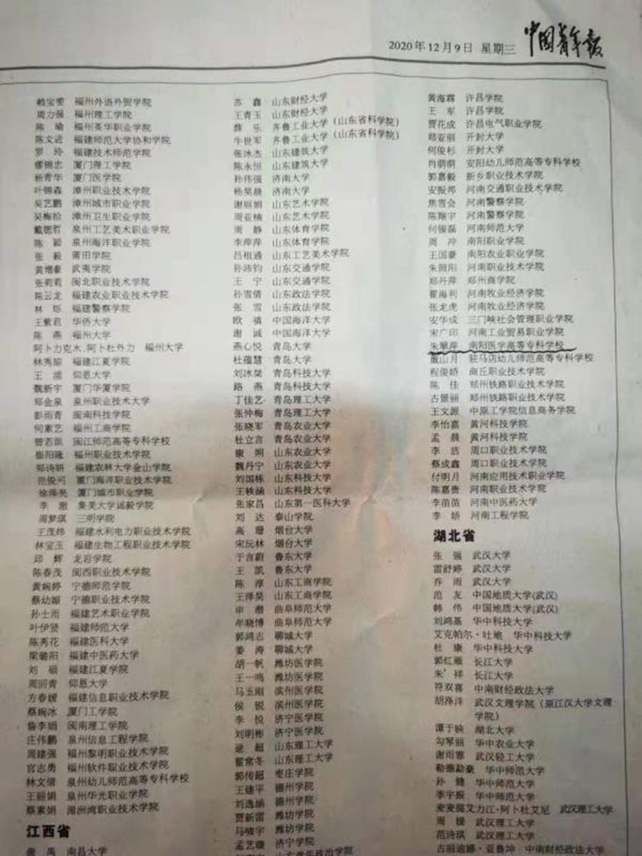 本次“中国大学生自强之星”奖学金推报工作由共青团中央、全国学联指导,中国青年报社、新东方教育科技集团联合开展。活动以“青春自强 刚健勇毅”为主题,重点关注家庭经济贫困学生以及在投身新冠肺炎疫情防控、服务全面建成小康社会、助力乡村振兴、参与社会实践、热心志愿服务、弘扬网上文明等方面有优秀事迹,在当代大学生中能够起到榜样作用的青年学生,为当代青年大学生实现中国梦树立可亲、可敬、可信、可学的身边榜样。本次推报工作采用“全国—省—校”三级体系,经学校团委、河南省团委两级推荐,全国组委会组织专家召开评审会,最终产生10名“中国大学生自强之星标兵”、2190名“中国大学生自强之星”。 河南省共有90名学生荣获“中国大学生自强之星”,我校朱翠萍同学是其中光荣的一员。自2015到2019年,我校学生已连续5年获此殊荣。(编审 杨金运)