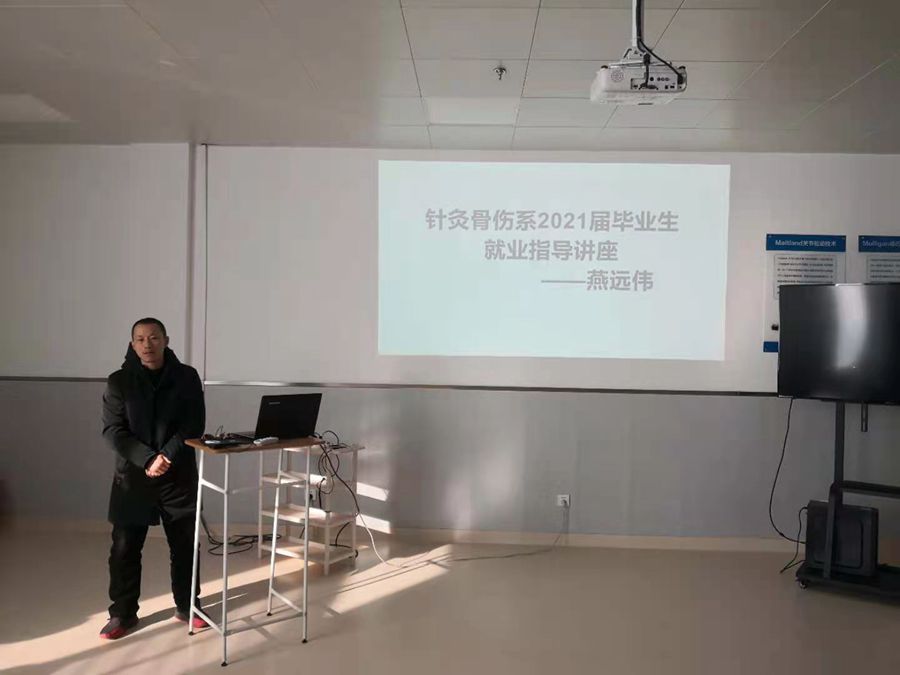 燕远伟老师为2021届康复专业毕业生进行了就业创业指导讲座。他对当前疫情大背景下毕业生就业创业前景进行了分析,对康复专业学生就业创业优势进行了解读。他鼓励广大毕业生要从基层干起,沉下心来,扎下根去,通过不断提升自我价值来满足自我需求的实现。同时,他鼓励广大有志青年参军入伍,到祖国和人民最需要的地方去,通过献身国防来谱写大好青春,实现人生价值。