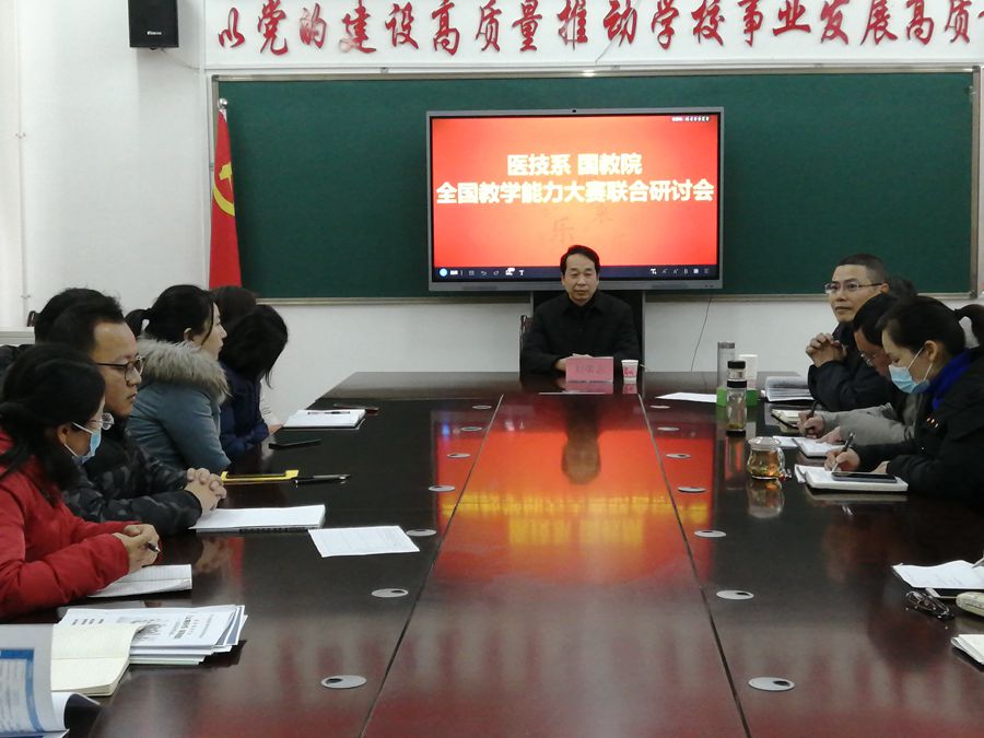 本网讯(文/国际教育学院 李连焕)1月6日下午,医技系与国教院在仲景西区三号教学楼联合组织召开“双高校建设”、“提质培优行动计划”培训会暨全国教学能力大赛研讨会。党总支书记张少羽、医技系与国教院全体教师参加。会议由国教院院长李弋主持。