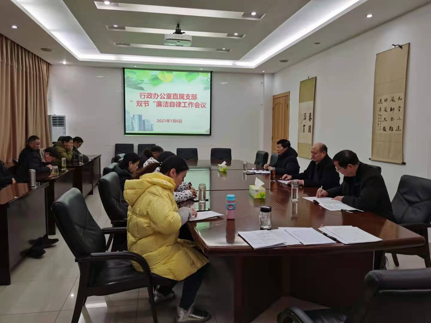 会后于当日下午,行政办公室直属支部立即召开“双节”廉洁自律工作会议,向全体党员传达学校会议精神,结合部门实际安排部署清廉工作。副校长张胜海同志以一名普通党员的身份参加了会议。