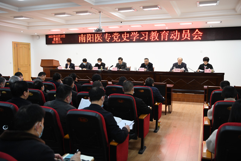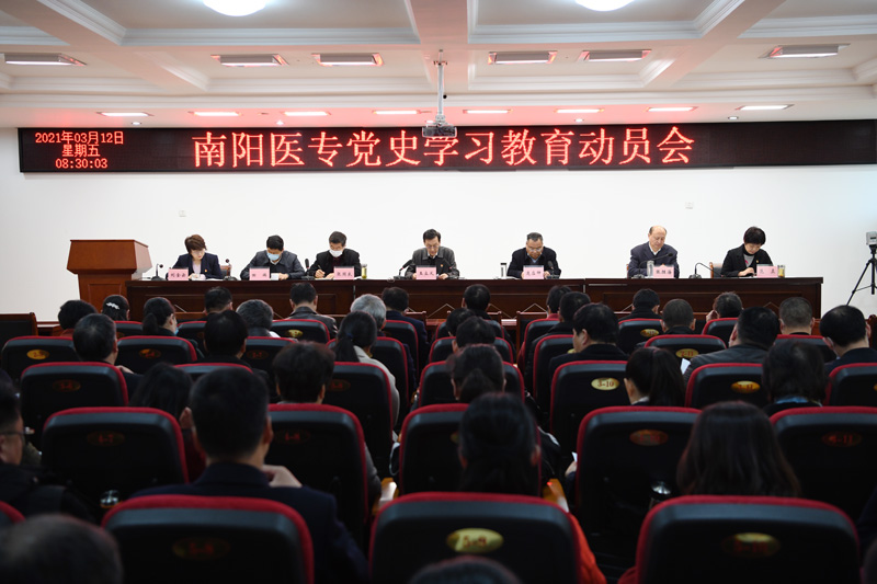 会上,校长王立义传达了《中共南阳医专委员会关于开展党史学习教育的实施意见》。会议指出,2021年是中国共产党成立100周年。开展党史学习教育,总结历史经验,认识历史规律,警醒全党始终保持“赶考”的清醒和坚定,保持自我革命的勇气和决心。全校各基层党组织和广大党员干部要充分认识党史学习教育的重大意义,深刻领会习近平总书记关于学习党的历史一系列重要论述特别是在党史学习教育动员大会上的重要讲话精神,深刻体悟为什么学、准确把握学什么、认真谋划怎么学,确保学习教育取得扎实成效。会议强调,要准确把握党史学习教育的目标要求。坚持以马克思列宁主义、毛泽东思想、邓小平理论、“三个代表”重要思想、科学发展观、习近平新时代中国特色社会主义思想为指导,通过学习教育,使广大党员干部、师生员工深刻铭记中国共产党百年奋斗的光辉历程,深刻汲取我们党坚持真理、修正错误的经验教训,统筹中华民族伟大复兴战略全局和世界百年未有之大变局,认清形势,把握规律,抓住机遇,应对挑战,为实现第二个百年奋斗目标而接续奋斗。会议指出,要全面落实党史学习教育各项重点工作。开展专题学习。各基层党组织要采取“第一议题”、理论学习中心组、举办研讨交流等学习形式,开展深度学习研讨。加强政治引领。要围绕庆祝中国共产党成立100周年主题,组织思政课教师积极参与“百年大党伟大复兴”课题研究,深入基层开展对象化分众化宣讲。组织专题培训。把党史学习教育作为基层党组织理论学习活动的重要内容,纳入各类培训计划,分级分类抓好党员干部理论武装。开展“我为群众办实事”实践活动。把“我为群众办实事”实践活动作为党史学习教育重要内容,围绕学校中心工作,深入开展调查研究,广泛听取意见建议。会议要求,要切实加强组织领导。履行政治责任。学校领导班子要带头开展党史学习教育,发挥示范引领作用。把握正确导向。坚持马克思主义历史观,严格落实意识形态工作责任制,引导干部群众树立正确的历史观、民族观、国家观、文化观。加强督促指导。学校党史学习教育领导小组组建督导检查组,全程对各基层党组织开展党史学习教育情况进行督促指导。营造浓厚氛围。统筹谋划好党史学习教育宣传工作,充分发挥校园媒体作用,用好“两微一端”等新媒体平台,生动报道为师生办实事的实际成效和群众反响。注重学习实效。发扬马克思主义优良学风,坚持集中学习和自主学习相结合,坚持规定动作和自选动作相结合,引导党员干部沉下心来学、联系实际学,学出坚强党性、学出信仰担当,为持续推动学校事业高质量发展提供强大思想动力和坚实组织保障。