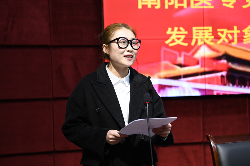 护理系2019级杨文君同学进行了表态发言,她表示要珍惜此次学习机会,加深对党基础理论知识的理解,端正入党动机,逐步向党组织靠拢,把自己锻炼成一个合格的社会主义建设者和接班人。