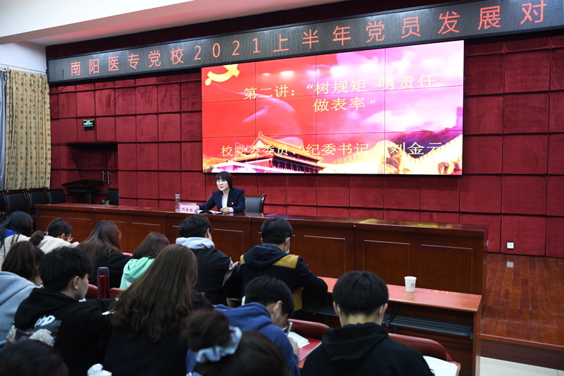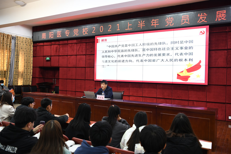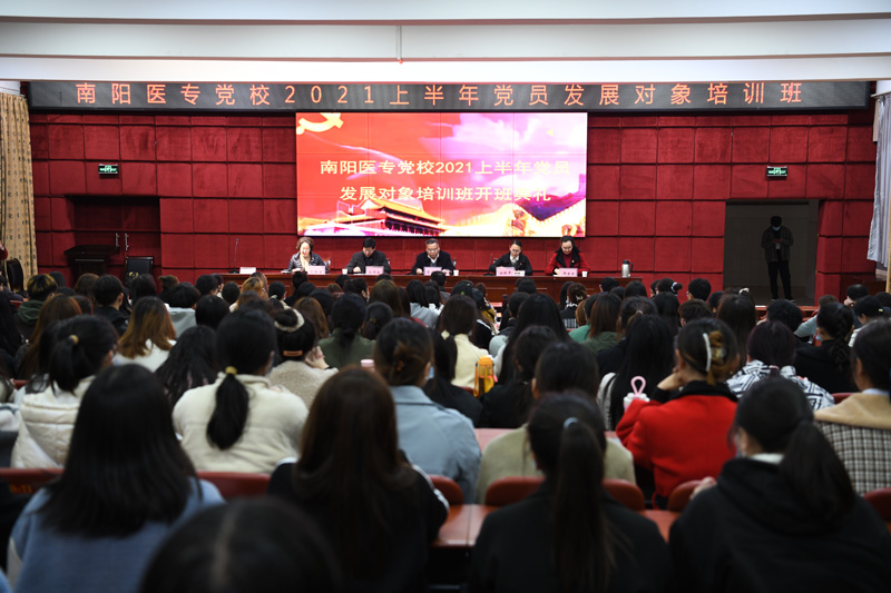 本网讯(文/组织部 刘萍)3月19日下午,中共南阳医专委员会党校在仲景西区图书馆学术报告厅举行2021上半年党员发展对象培训班开班典礼,线上分会场设在仲景东区学术报告厅。校党委副书记逵应坤出席开班典礼;党校校务委员,部分涉学系(部、院)党总支书记和老师参加了开班典礼。