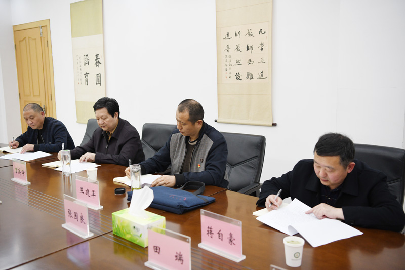本网讯(文/宣传部 李峰松)4月12日下午,南阳市委党史学习教育第一巡回指导组组长丁济泽、副组长王建军、成员张德东、蒋自豪一行到莅临开展党史学习教育指导调研工作。在家的领导班子成员以及相关处室负责人参加汇报会。副校长张胜海主持汇报会。