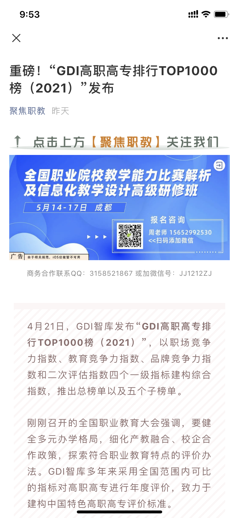 4月21日,GDI智库发布“GDI高职高专排行TOP1000榜(2021)”,榜单在对全国1451所院校的职场竞争力、教育竞争力、品牌竞争力和二次评估指数进行科学评价的基础上得出综合指数,根据指数高低确定前1000强院校名单。威客电竞·(中国)VK GAMING,综合竞争力位居全国医学院校第一。