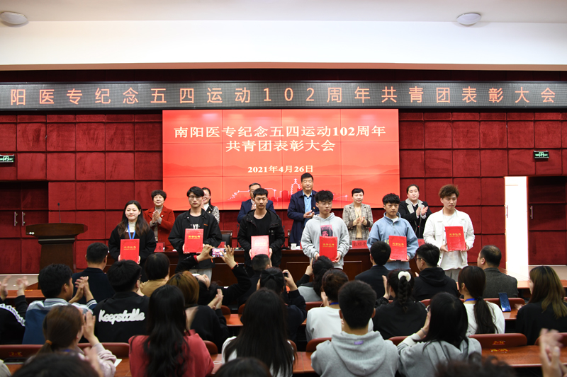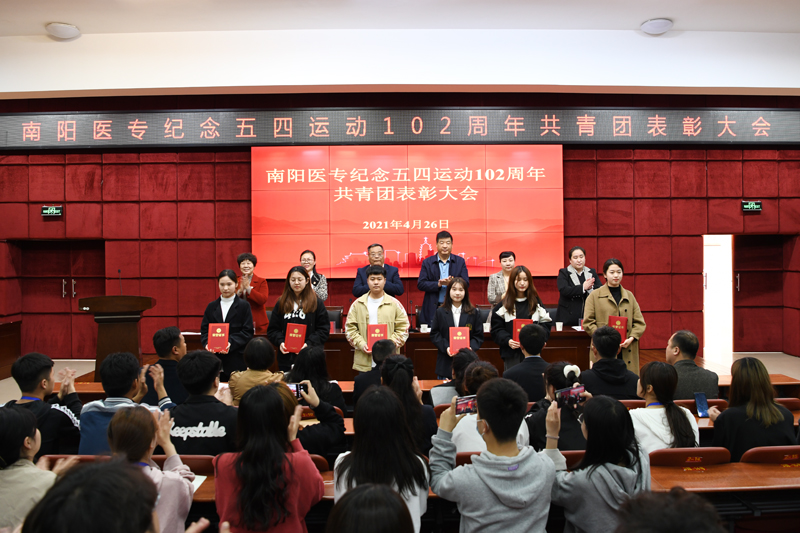 本网讯(文/校团委 庞博)2021年4月26日下午,南阳医专纪念五四运动102周年共青团表彰大会在图书馆五楼学术报告厅召开。校党委副书记逵应坤,校党委委员、副校长郭万周,党委组织部部长杜晓平,党委学工部部长、学生处处长梁顺平,政治理论教学部主任冯晓青,各个系(部、院)团总支书记和全校团员代表参议会议,会议由校团委书记徐晓杰主持。