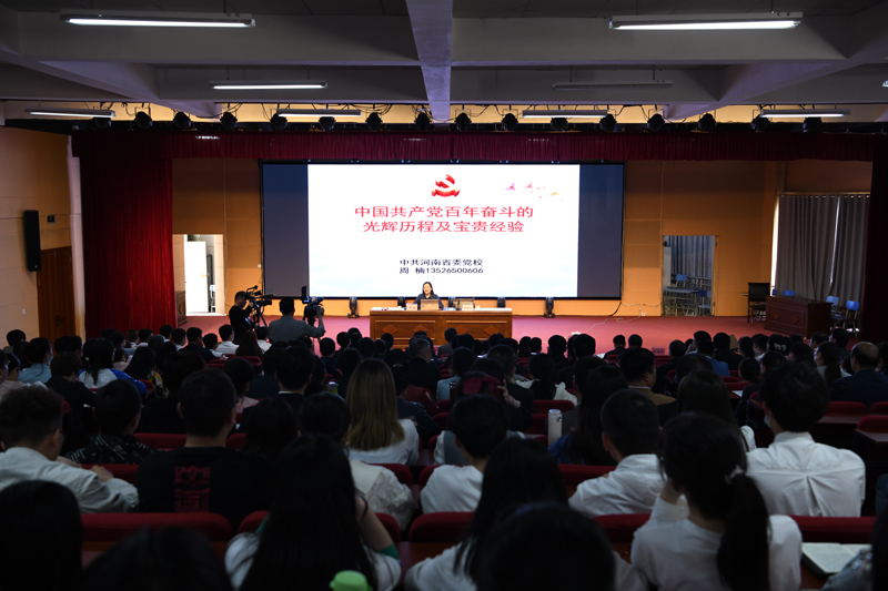 省委百年党史百姓宣讲团成员、中共河南省委党校中共党史教研部副主任、副教授周楠博士以“中国共产党百年奋斗的光辉历程及宝贵经验”为题,从新民主主义革命时期、社会主义革命和建设时期、改革开放和社会主义现代化建设新时期、中国特色社会主义新时代四个时期回顾了中国共产党百年奋斗史,从要坚持党的领导、要注重理论指导、要站稳人民立场、要勇于攻坚克难四个方面总结了中国共产党百年奋斗的宝贵经验。随后,她同我校青马学院的学员代表进行了交流。