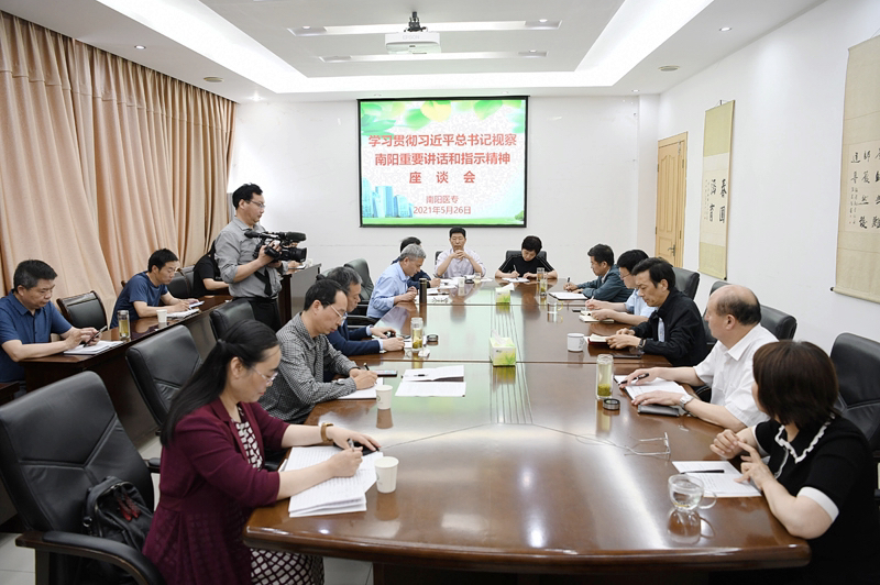 本网讯(文/宣传部 张旭斌)5月26日下午,我校在一号办公楼三楼会议室召开学习贯彻习近平总书记在南阳考察调研时重要讲话精神座谈会。校领导柳明伟、王立义、张国良、张胜海、田端、范真、刘金云出席会议,学校相关部门、系(部、院)负责人及部分师生代表参加会议。