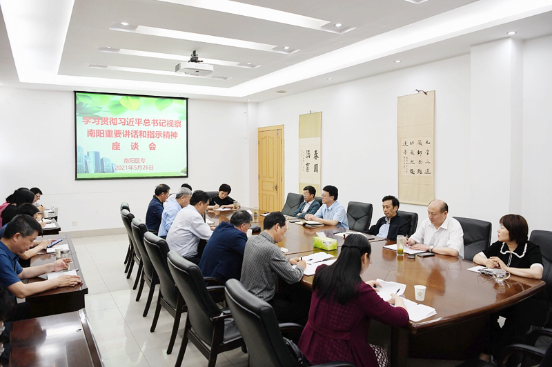 与会人员围绕习近平在考察医圣祠时发表的重要讲话相继作了表态发言,大家一致认为,习近平考察南阳首站选择来到医圣祠,体现出对中医药发展的高度重视,讲话对中医药未来传承发展作了一次全方位“把脉”。作为南阳唯一的医学高等院校,我们倍感温暖、倍感振奋、备受鼓舞;作为赓续张仲景国医大学医脉的南阳医专,我们深感所肩负的中医药事业发展的使命光荣、责任重大。我们将牢记总书记的殷切嘱托,坚持守正创新,不断丰富发展中医学,加强学科建设,升级人才培养模式,通过产教融合、校企合作,加快科研成果向生产力的转化,服务地方、造福人民。