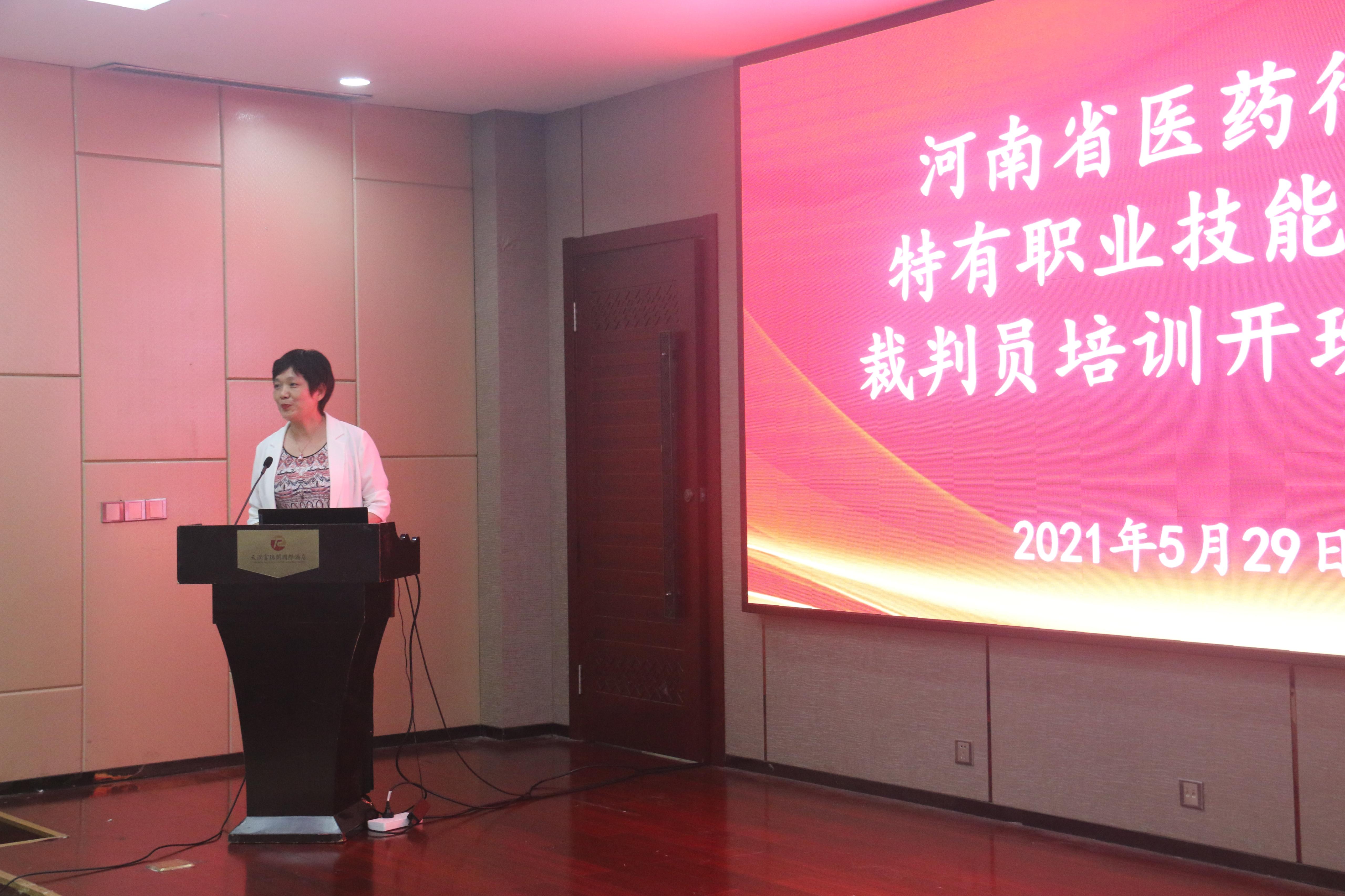 河南省医药行业协会职业教育分会副会长、副校长范真在裁判员培训开班仪式上致辞。她希望各位学员,能够从习近平总书记视察南阳的重要讲话中汲取强大的精神动力,认真学习裁判员工作规程,吃透技能竞赛技术文件要求,提高执裁水平,树立良好形象,以实际行动助力第一届河南省医药行业特有职业技能大赛圆满举办。