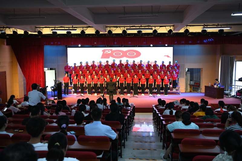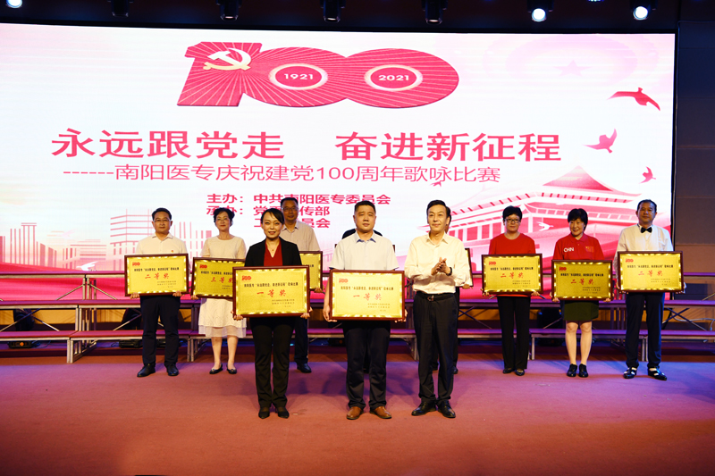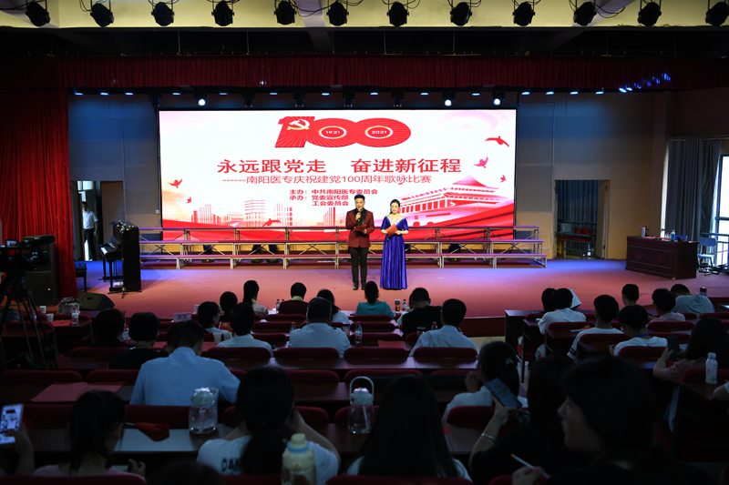 本网讯(文/校工会 朱东民)为进一步激发广大教职工爱党爱国爱社会主义的热情,6月16日下午,我校在仲景东区礼堂举行庆祝中国共产党成立100周年“永远跟党走·奋进新征程”歌咏比赛。校长王立义、副校长范真、纪委书记刘金云参加了合唱。副书记逵应坤、副校长张国良与师生共同观看了比赛。
