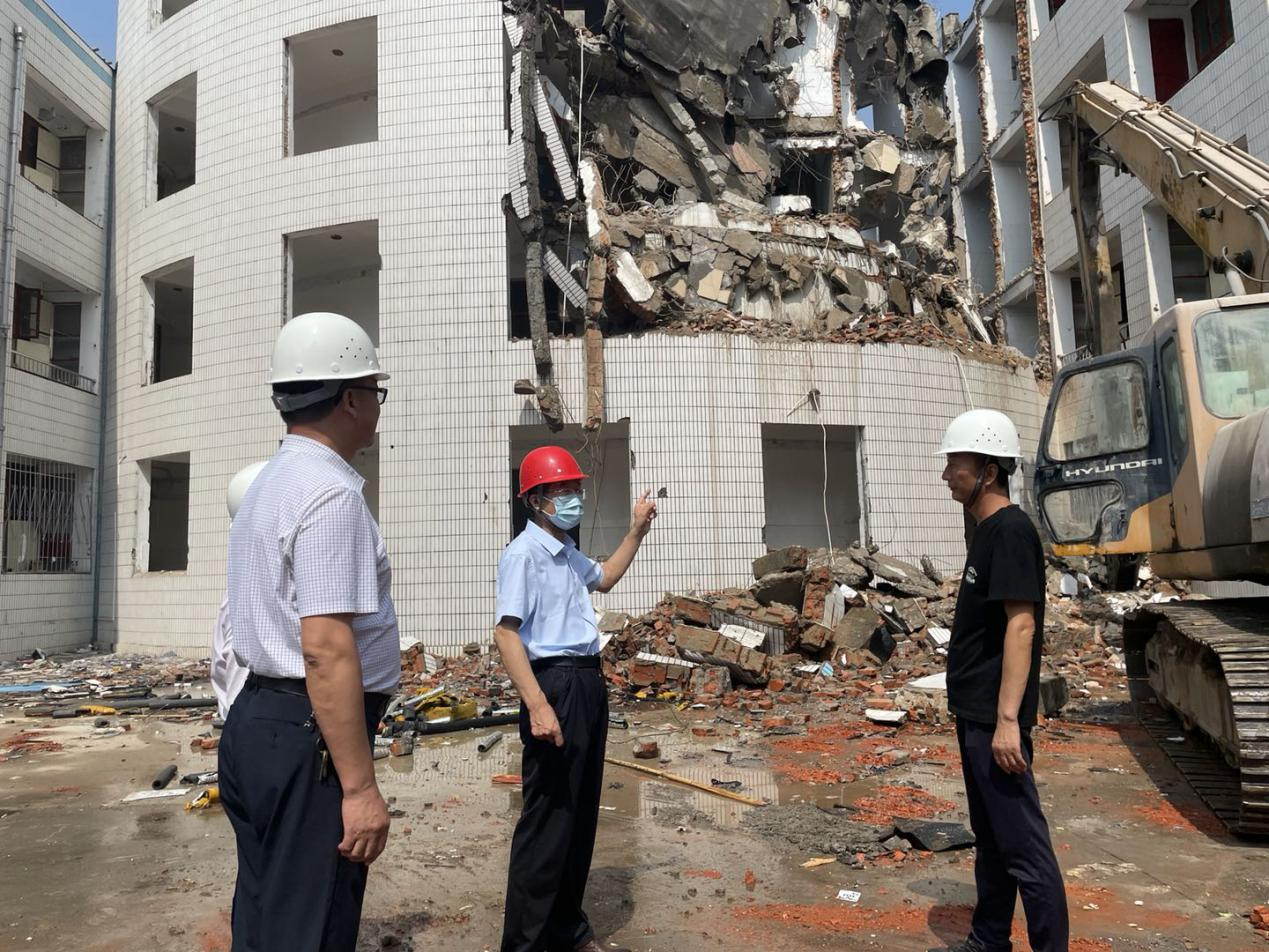 到9#学生公寓施工现场,针对部分老旧建筑拆除工程,张国良对施工企业和监理现场管理人员提出“三宝”、“四口”、“五临边”要切实落实到位,企业要切实做到文明施工、安全施工,重视细节,规范管理,精细施工。