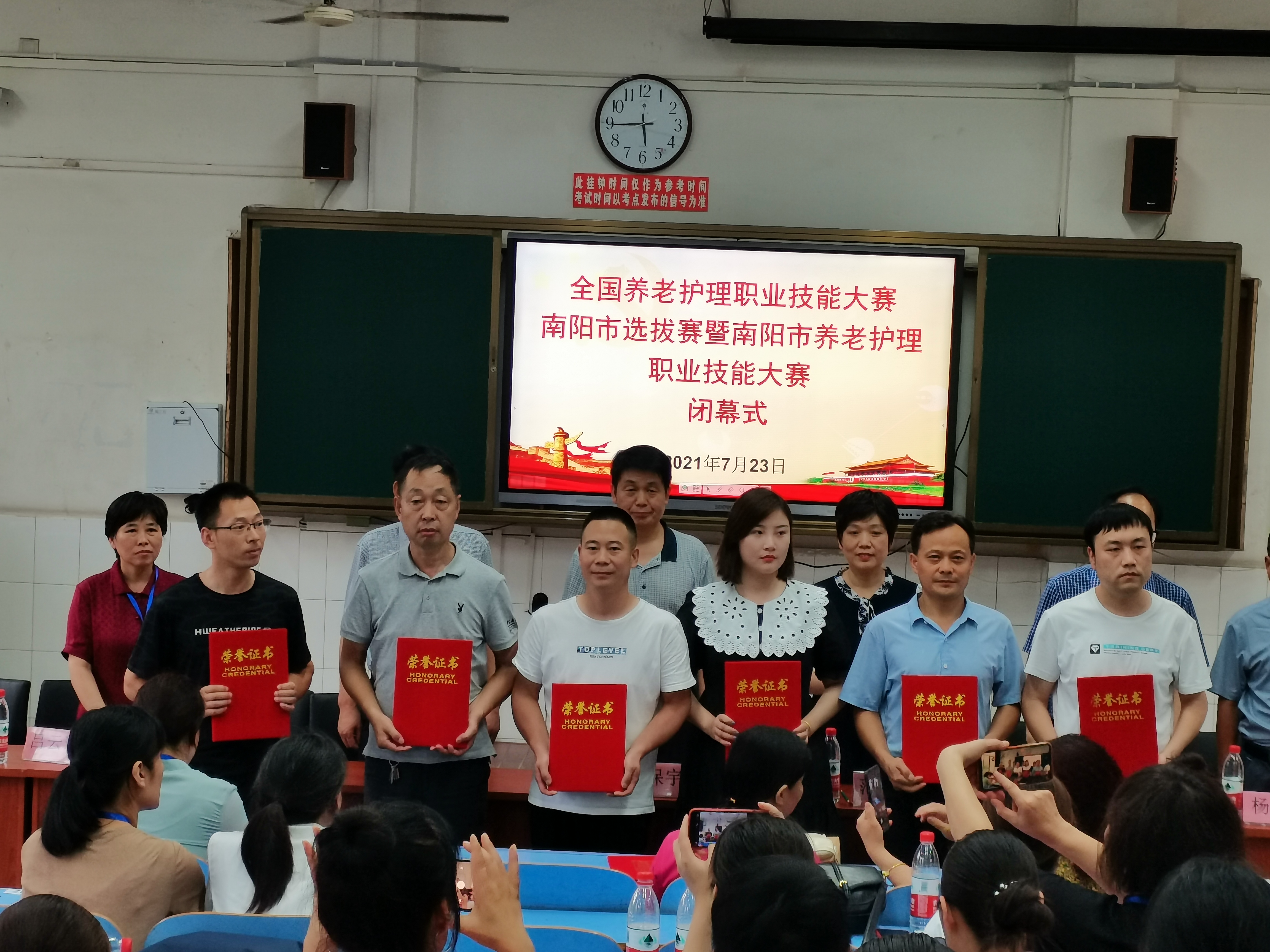 经过激烈的角逐,最终宛城区代表队获得团体一等奖,选手刘萍获得个人一等奖。南阳市民政局副局长王保宇、南阳医专副校长范真等为获奖选手颁发荣誉证书。范真希望大家以此次大赛为契机,在实际工作中带动同行不断学习提高养老护理服务水平,同时欢迎大家多来南阳医专指导交流工作,共同推动国家养老服务事业高质量发展,为实施健康中国战略添砖加瓦。