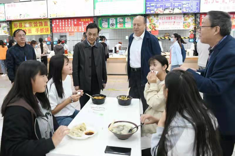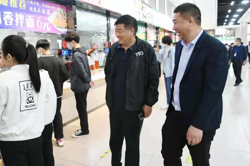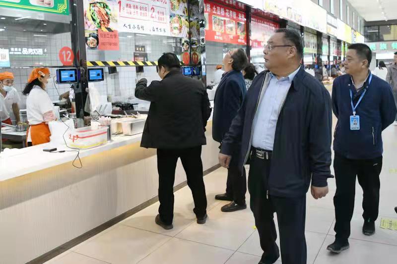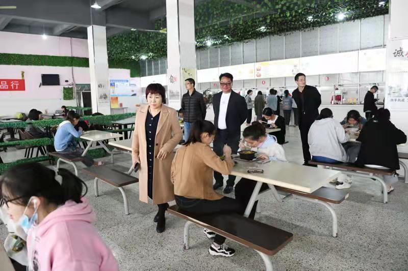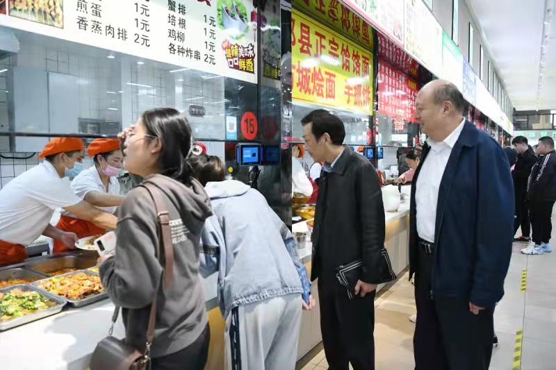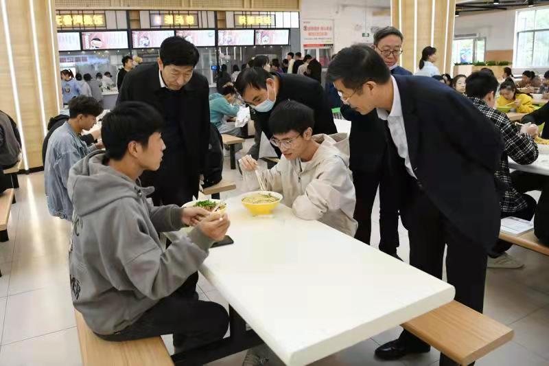 在学生食堂,领导们先后查看了后厨操作间、储藏室、烹饪间、售卖间等重要部位。调研过程中,校领导与学生共同就餐,同大家进行了深入交流,倾听学生意见,对就餐高峰期排队、学生对食堂伙食质量和价格的评价情况进行了详细了解。