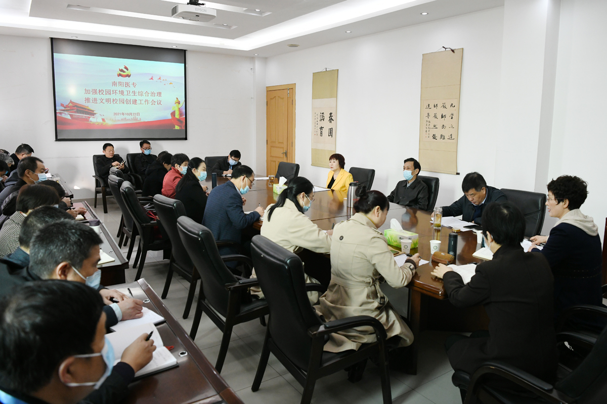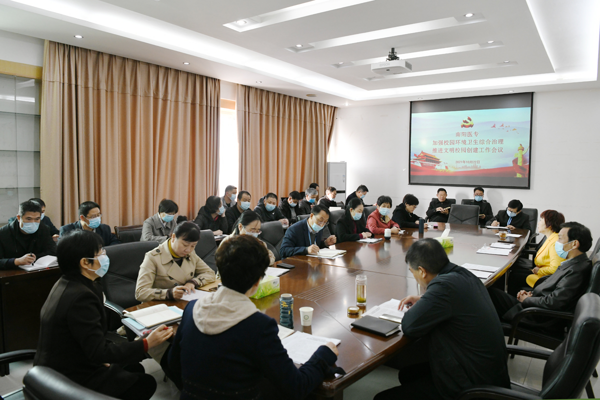 本网讯(文/宣传部 陈铁良)10月22日上午,我校在仲景西区1号办公楼三楼会议室召开加强校园环境卫生综合治理推进文明校园创建工作会议。校长王立义、副校长郭万周、纪委书记刘金云出席会议,各处室、涉学系部院负责人参加会议。