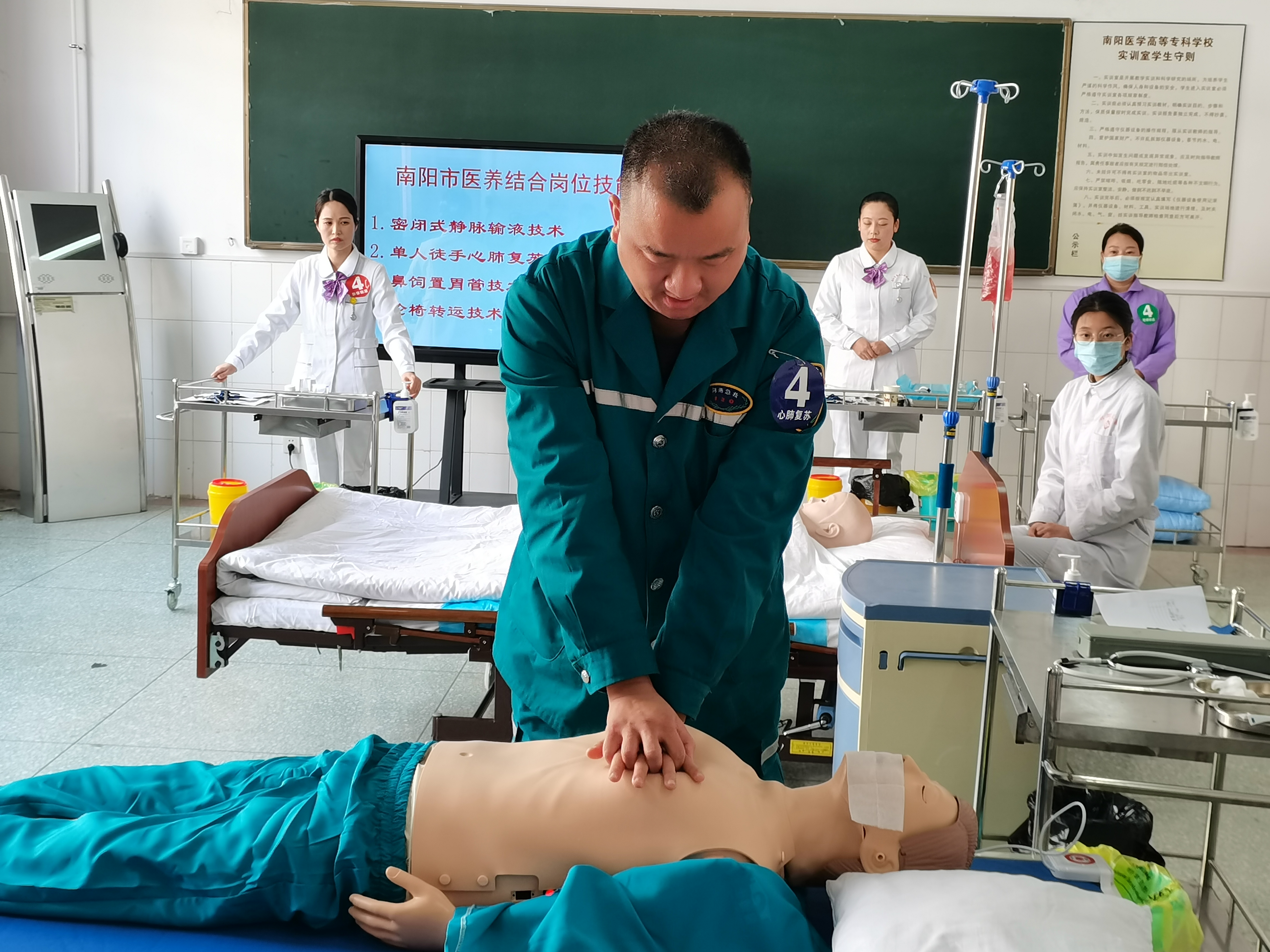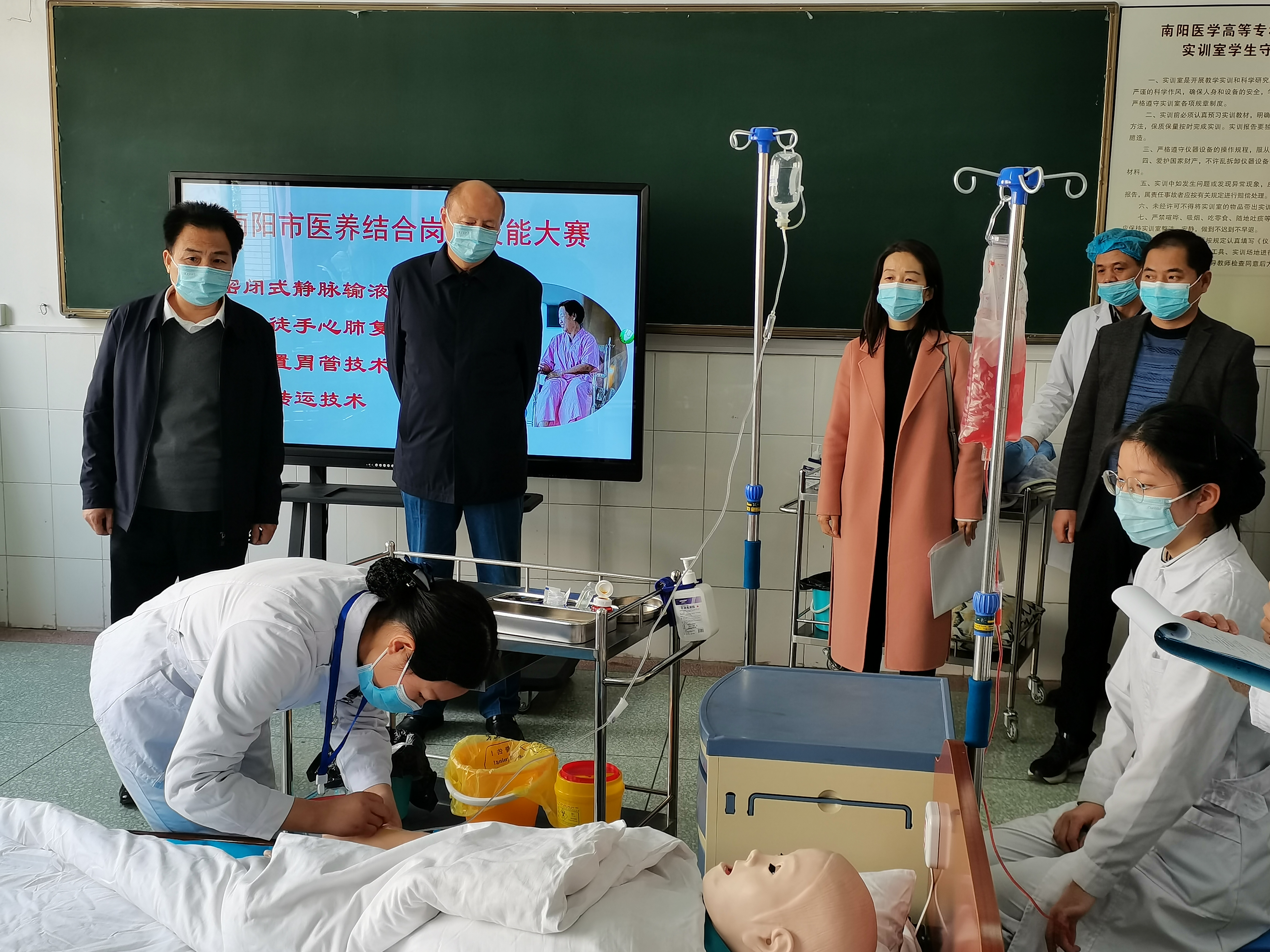 本网讯(文/护理系 李明哲)为进一步提升我市医养结合机构从业人员的综合素质和职业技能水平,由南阳市卫生健康委主办、南阳市老龄事业发展中心和威客电竞·(中国)VK GAMING,承办的南阳市2021年医养结合岗位技能大赛于10月23日在我校隆重举行,来自南阳地区15个县、市、区代表队参加了比赛。