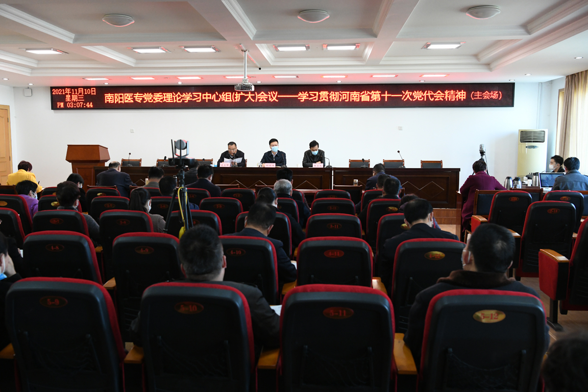 本网讯(文/宣传部 潘晓红)11月10日下午,学校召开党委理论学习中心组(扩大)会议,专题传达学习中国共产党河南省第十一次代表大会精神,安排部署贯彻落实工作。党委书记柳明伟讲话,党委副书记逵应坤传达省第十一党代会精神,会议由党委副书记、校长王立义主持,学校党委理论学习中心组成员、中层干部以及三所附院书记院长参加会议。