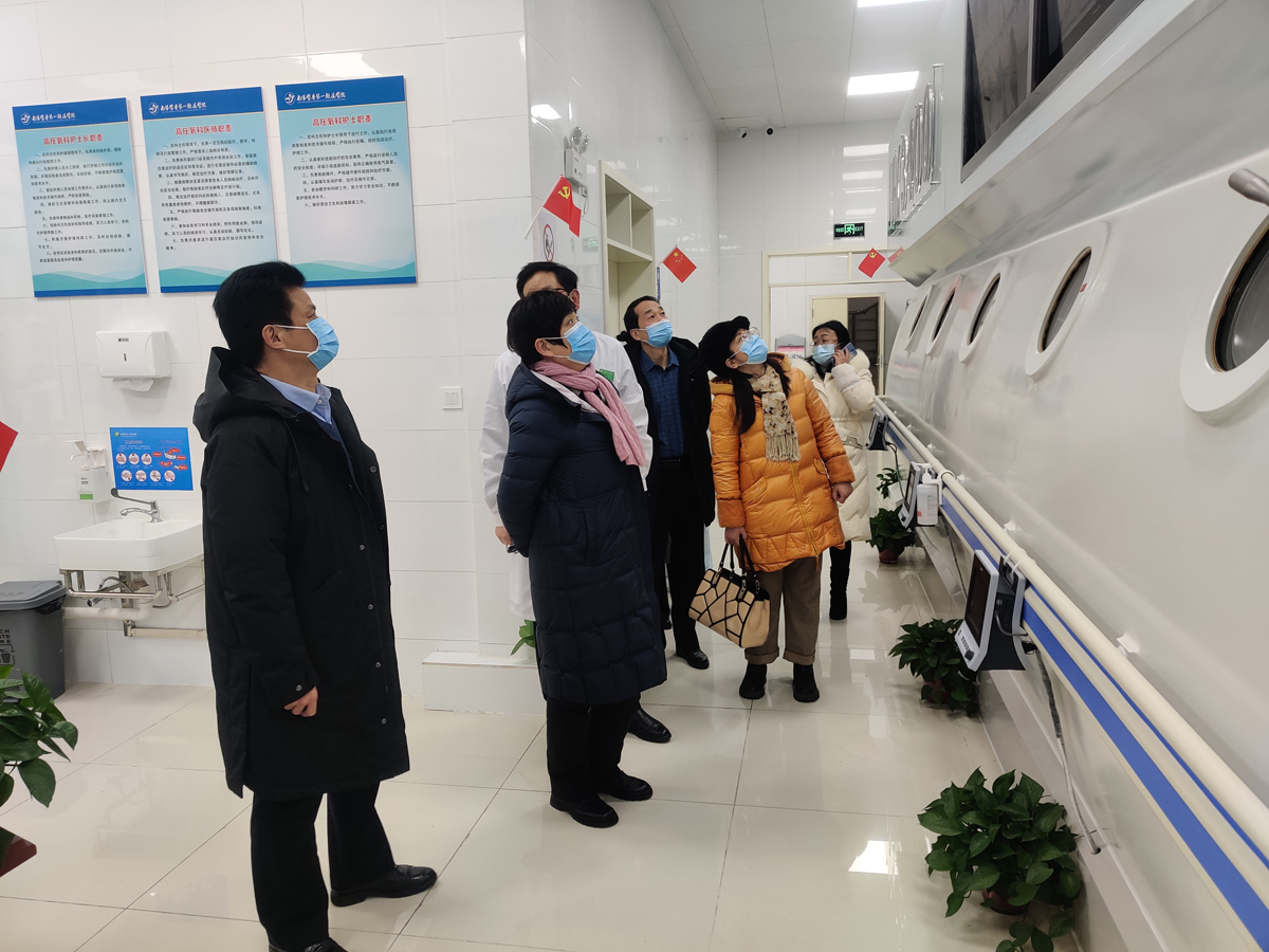 在李文献院长的陪同下,范真一行先后参观考察了眼视光门诊、医学检验中心、康复科、仲景中医馆、高压氧舱等科室,详细了解了科室发展现状、校企合作、产教融合开展情况。随后召开了校院产教融合建设、创业创新工作座谈会。