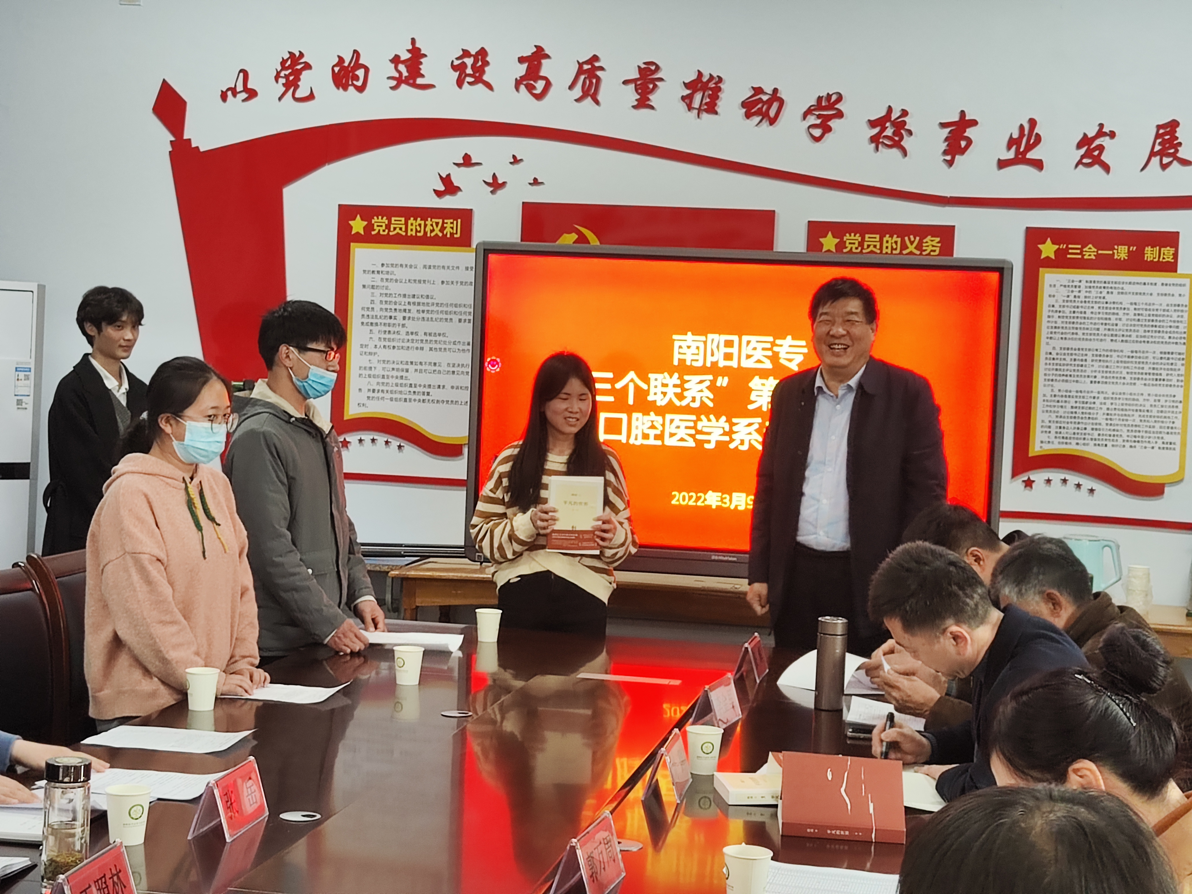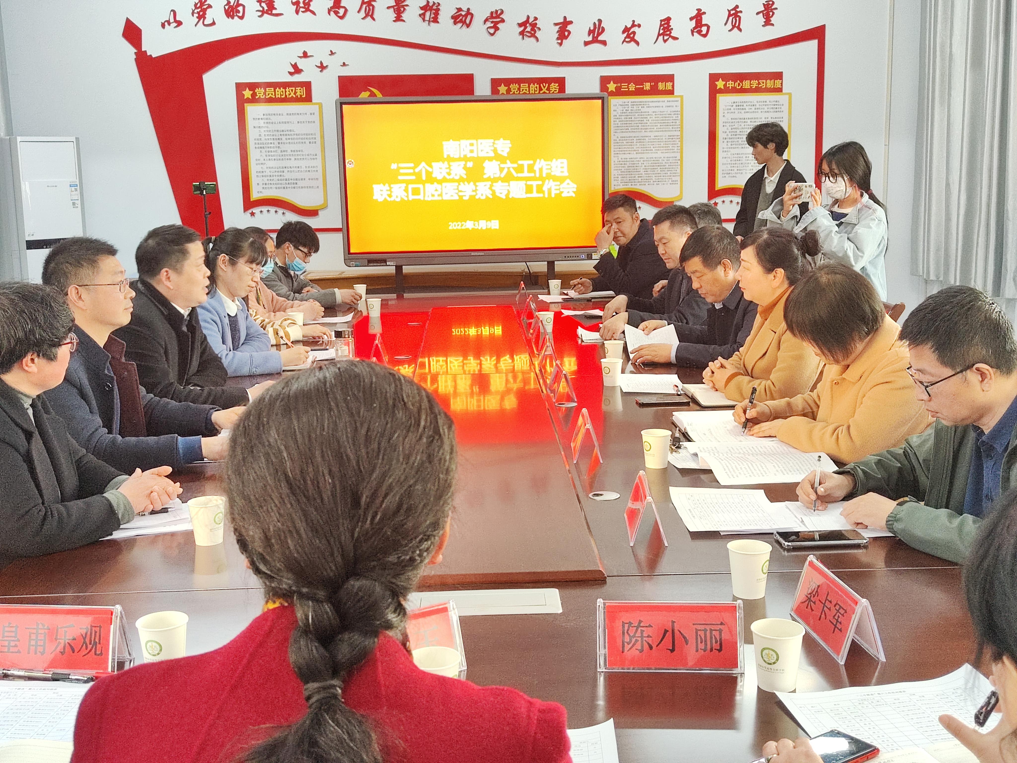 本网讯(文/口腔医学系 王金金)为扎实推进学党史、办实事落地见效,切实解决师生烦心事,增强师生获得感、幸福感。 3月9日下午,学校党委委员、副校长郭万周带领第六工作组深入口腔医学系开展“三个联系”活动。学生处处长梁顺平、就业创业处处长刘鹏等一行11人,口腔医学系领导班子、辅导员、班主任和联系班级师生代表参加了会议。活动在二号办公楼四楼会议室进行,会议由系党总支书记余飞海主持。