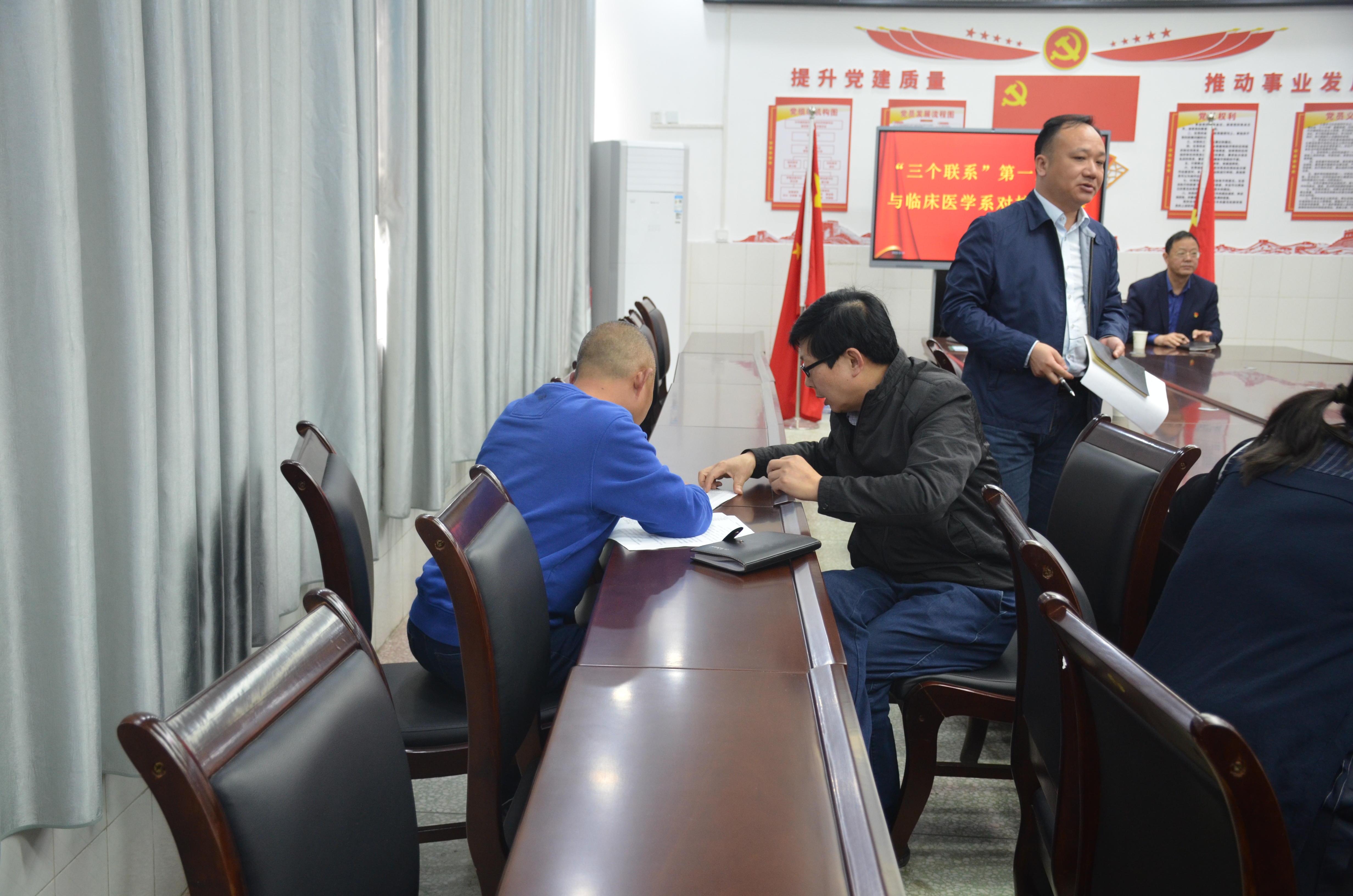 本网讯(文/临床系 王川)为深入贯彻落实《关于推进党史学习教育常态化 建立为师生办实事制度的实施意见》(宛医专党〔2021〕71号)文件要求,切实将“三个联系”工作制度落地落实, 3月14日下午,受第一工作组组长、校党委书记柳明伟委托,第一工作组副组长、校党政办主任江学法带领“三个联系”第一工作组成员与临床医学系在4号教学楼408会议室进行对接见面。第一工作组成员、临床医学系领导班子和全体辅导员参会。会议由系党总支书记秦玖刚主持。