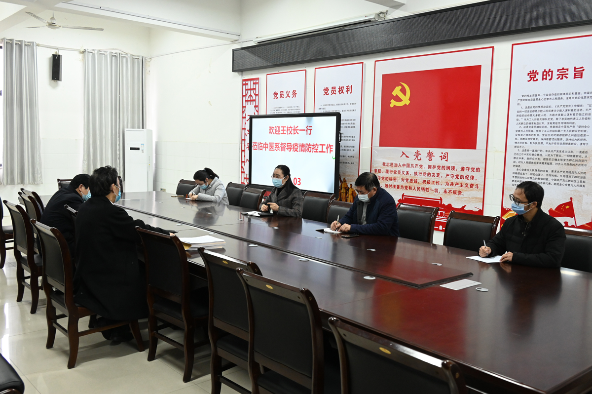 中医系党总支书记张明丽、主任王春成进行了工作汇报。王校长督导检查了中医系教学活动、疫情防控政策的落实以及封校期间同学们的生活学习状况。