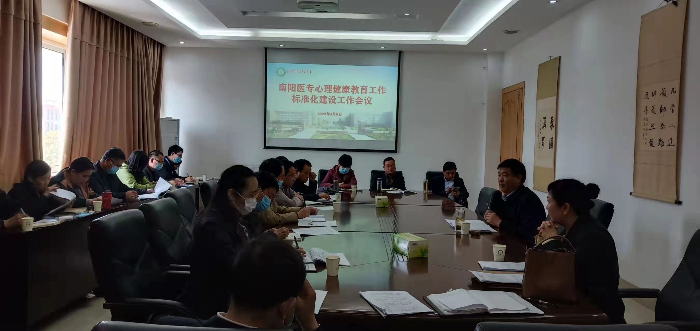 本网讯(文/学生处 褚宛玉)4月6日下午,南阳医专心理健康教育工作标准化建设工作会在一号办公楼二号会议室进行。党政办、组织部、学生处、教务处、宣传部等12个处室及各涉学系(部、院)书记参加了会议。副校长郭万周出席并主持会议。