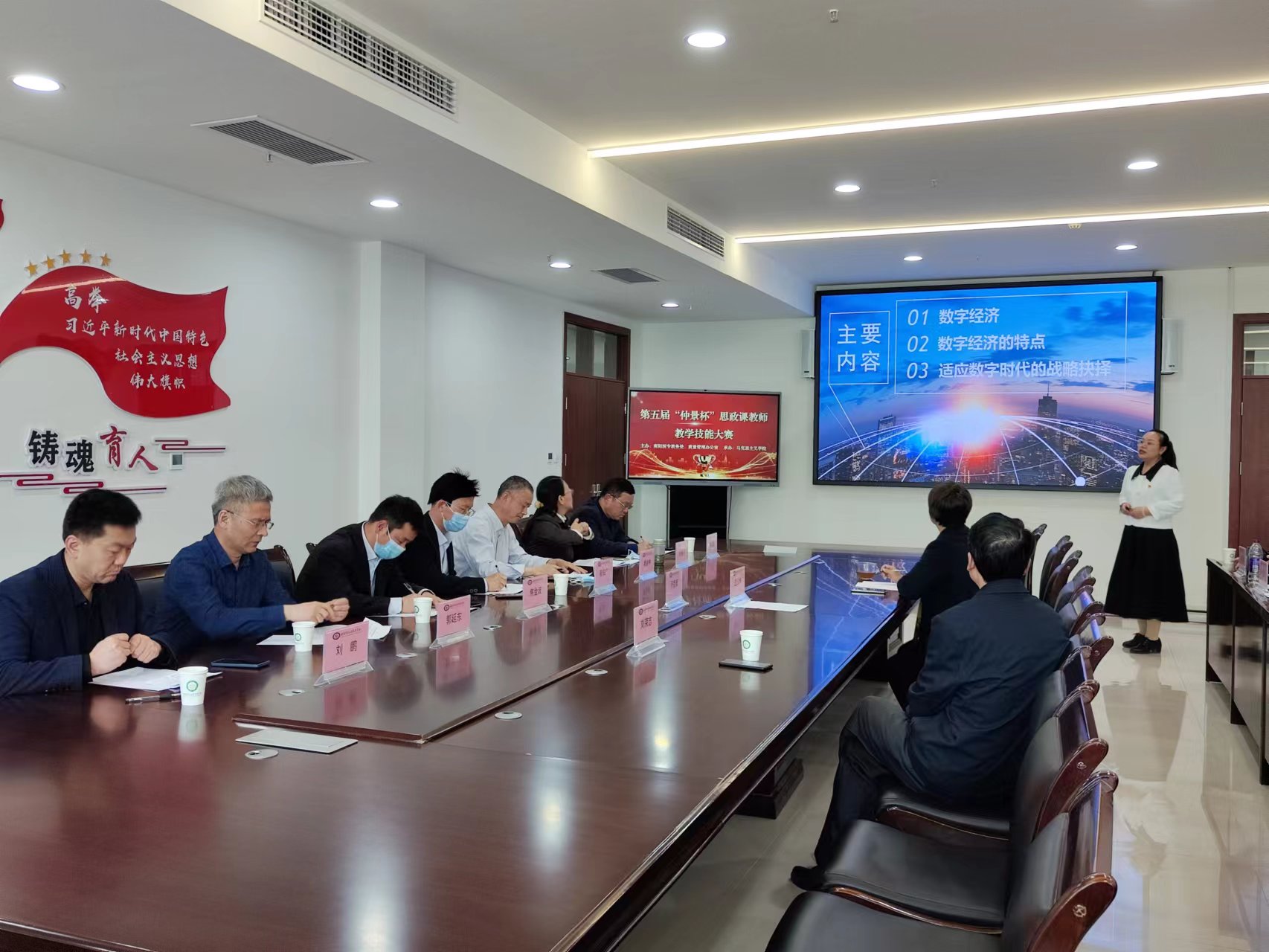 逵应坤发表讲话。他强调,此次“仲景杯”思政课教师教学技能大赛成功举办,是我校贯彻落实习近平总书记在学校思想政治理论课教师座谈会重要讲话精神,将习近平新时代中国特色社会主义思想进教材进课堂进头脑,全面推动思政课课堂教学改革创新的重要检验;是学校党委高度重视思政课建设、强化思政课课堂教学的重要体现;是推进河南省委教育工委关于开展高校思政课“大练兵、大比武、大展示”活动的重要举措。他希望各位教师再接再厉,对标习近平总书记提出的“八个相统一”从严要求,精心备课,不断提高,使党的创新理论真正进课堂,达到入脑入心的教学效果。 (编审 李峰松)