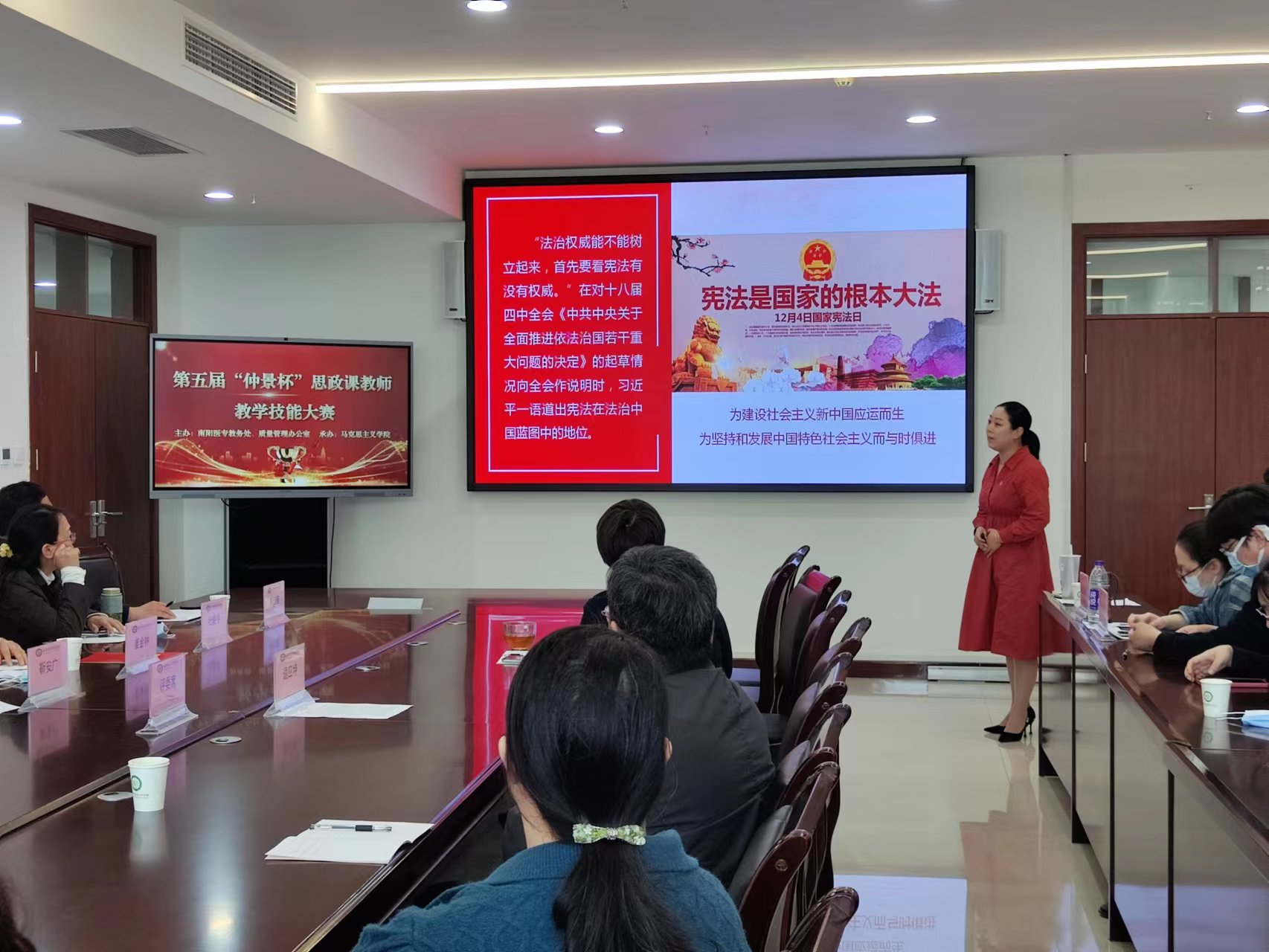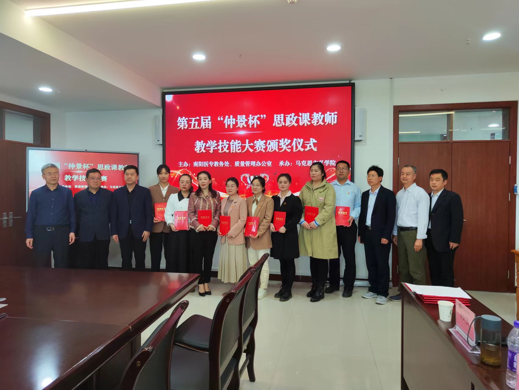 本网讯(文/马克思主义学院 卢孟)为深入学习贯彻习近平总书记在学校思想政治理论课教师座谈会上的重要讲话精神和“大思政课”重要指示精神,按照《关于开展全省学校思想政治理论课教学技能“大练兵、大比武、大展示”活动的实施意见》(豫高发〔2021〕141号)的要求,2022年4月20日下午,由教务处、质量管理办公室主办,马克思主义学院承办的南阳医专第五届“仲景杯”思政课教师教学技能大赛决赛在仲景文化中心隆重举行,校党委副书记逵应坤、教务处处长、质量管理办公室主任、党委组织部部长、宣传部部长等领导出席。特聘请南阳师范学院马克思主义学院院长靳安广教授、南阳理工学院马克思主义学院院长姜金林教授等专家担任大赛评委。全校思政课专兼职教师全员参加观摩学习。