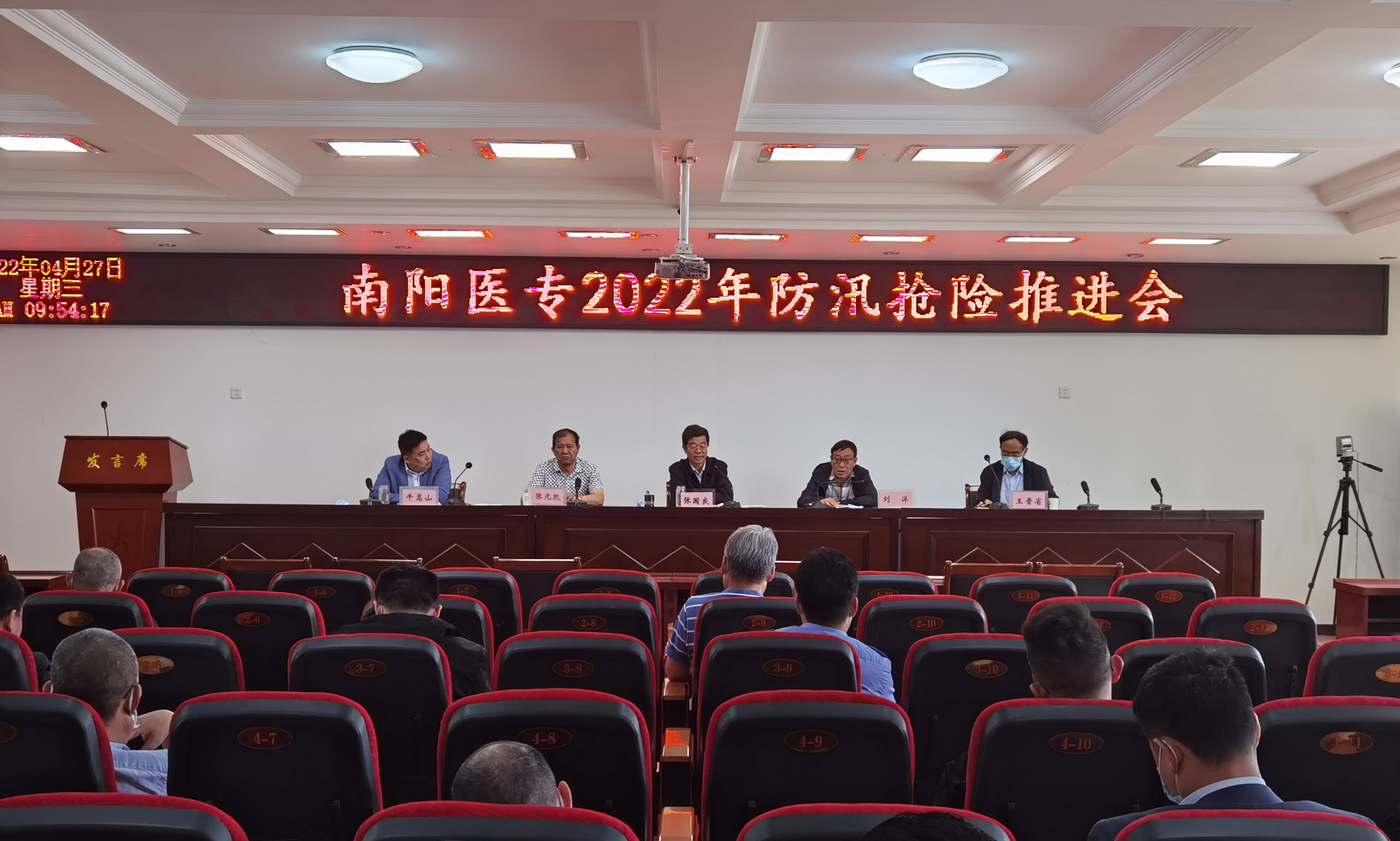 本网讯(文/总务处 刘洋)4月27日上午,我校2022年防汛抢险推进会在行政办公楼五楼会议室举行。学校党委委员、副校长张国良出席并主持会议,法制办、总务处、保卫处、生活服务中心负责人及抢险突击队全体成员参加会议。