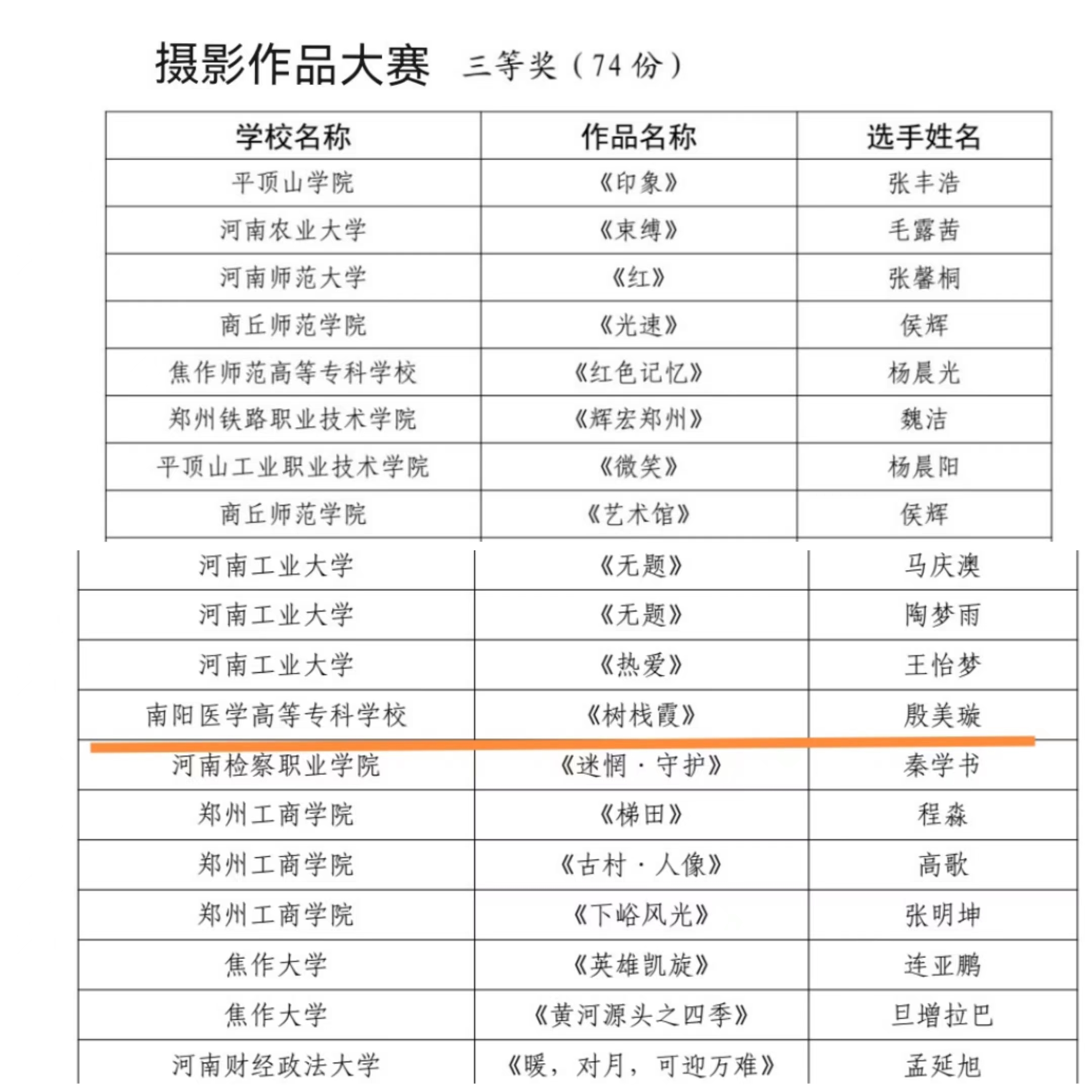 河南省第十七届大学生网上科技文化艺术节南阳医专获奖名单