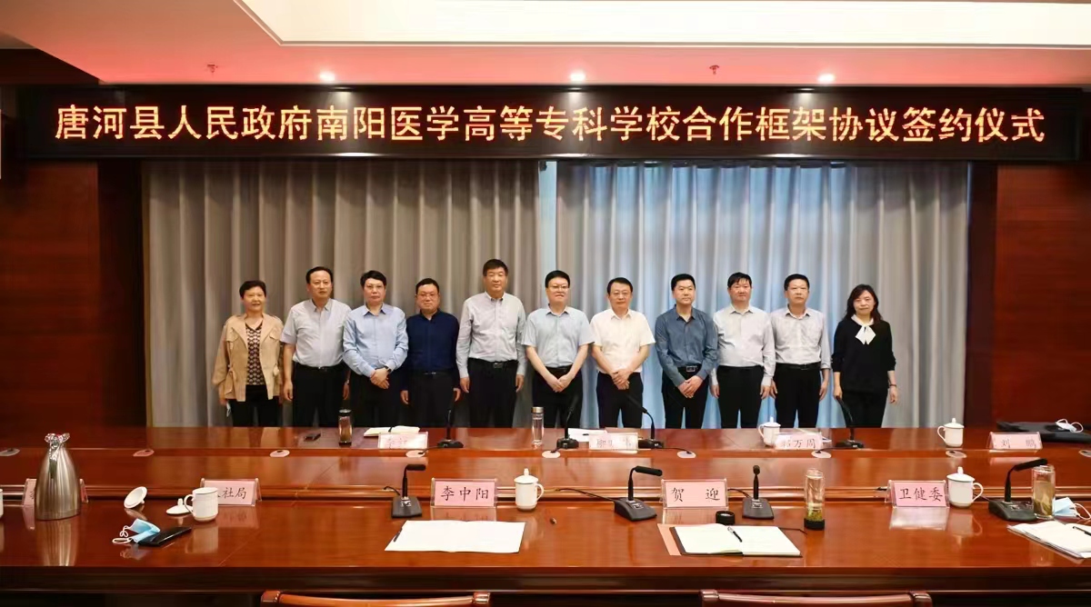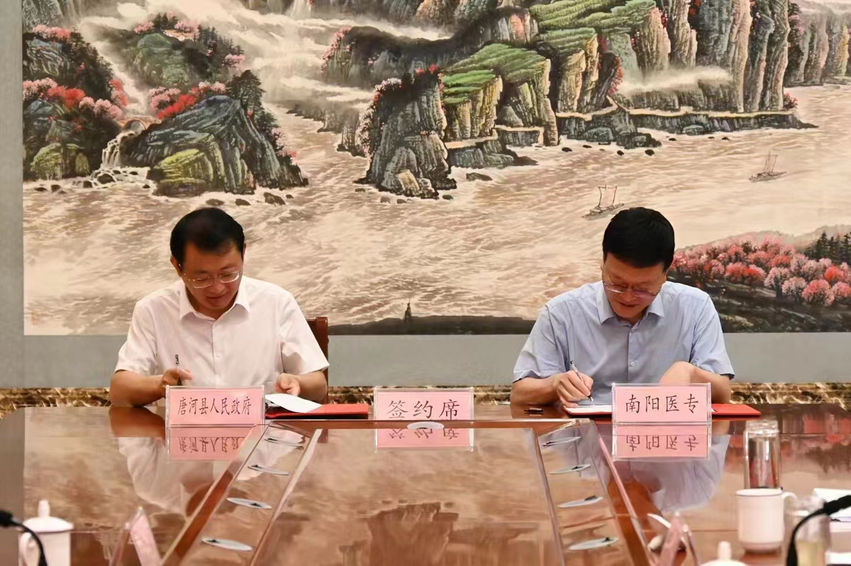 柳明伟就学校基本情况、服务张仲景国医大学复建工作进展情况、校地合作基础及未来校地合作方向等方面做了详细介绍。他指出,多年来南阳医专与唐河县携手并肩、相互支持,建立了深厚的合作情谊。学校目前专业设置齐全,发展优势强劲,初步形成了学生“入口旺、出口畅”的良好局面。他充分肯定了双方在医疗卫生、学生实习就业等多个领域开展校地合作的成绩,就定向医学专业学生培养、基层卫生人员能力提升、开展社会培训、中职教育合作、拓展实习就业领域等五个方面加强深度沟通进行阐释,希望以本次战略合作框架协议的签订为契机,积极推进校地合作项目落地生根,进一步服务好唐河经济社会发展。
