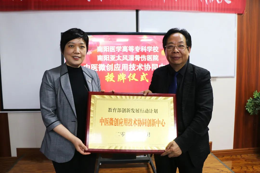 上午,副校长范真在南阳亚太风湿骨伤医院出席揭牌仪式并讲话,就学校基本情况、校院合作基础及未来校院合作方向等方面做了详细介绍。范真一行参观了吴氏中医文化馆。她指出,吴汉卿教授作为“吴氏中医针法”非物质文化遗产传承人,他发明的中医筋骨针法与水针刀疗法,以六经辨证传承了仲景学术思想,作为国家中医药管理局“一带一路”中医药国际合作项目,已走向全世界七十多个国家地区,并推进中医实用技术走向国外,为打响仲景学术品牌,助力中医药走向世界作出的杰出贡献。我们要充分利用好“吴氏中医针法”优质资源,在国家级“中医微创应用技术协同创新中心”、河南省“技艺技能传承创新平台”的基础上,共建完成非物质文化遗产“吴氏中医针法”博物馆,按照“传承仲景思想,培育专业特色”的专业建设思路,进一步探索建立“中医微创学院”,创新人才培养模式,实现与国内同类专业错位发展,打造出我校中医骨伤专业、针灸推拿专业的南阳特色、仲景特色。