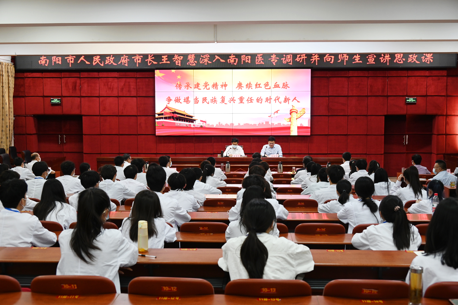 南阳市政府副秘书长沈俊年、市委办副主任张国合陪同调研,南阳医专领导班子全体成员、各基层党组织书记、相关处室及附属医院负责同志和部分学生代表在现场聆听了思政课。(编审 李红普)