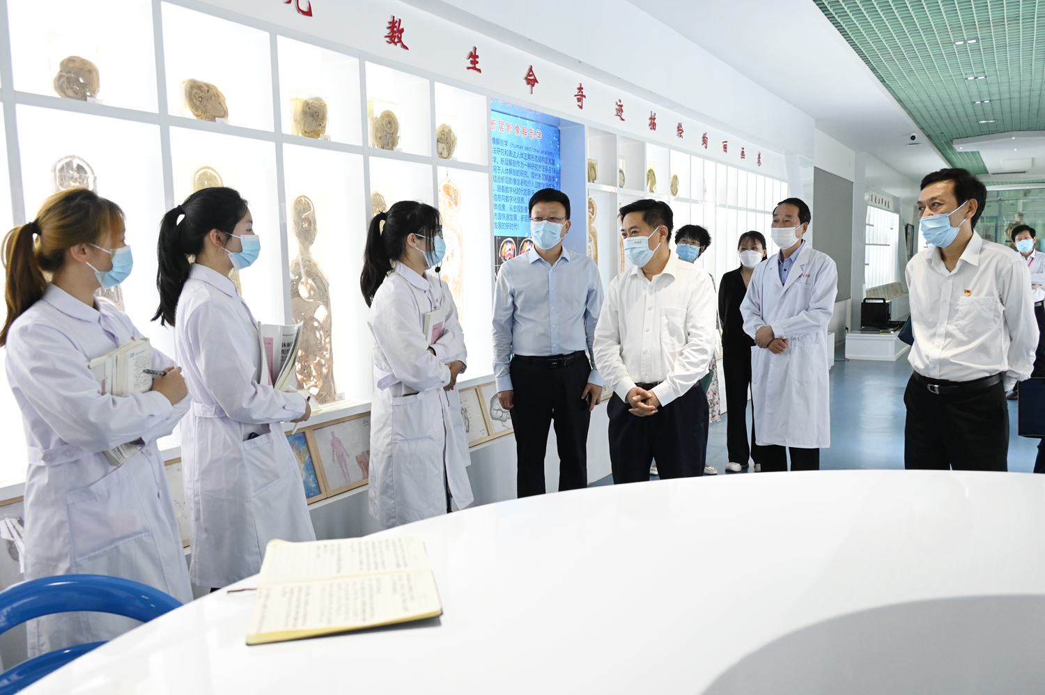 王智慧一行首先在南阳医专党委书记柳明伟、校长王立义陪同下考察了校园环境、教学设施和实验实训等场馆。在人体生命科学馆,王智慧仔细观看各类科研标本,认真听取讲解汇报,了解中医药在当前疫情防控中的重要价值和显著成效。他和正在开展实训学习的同学们亲切交流,询问生活学习情况,勉励大家学好专业知识,扎根基层,甘于奉献,在人民群众最需要的地方绽放属于自己的青春之花。