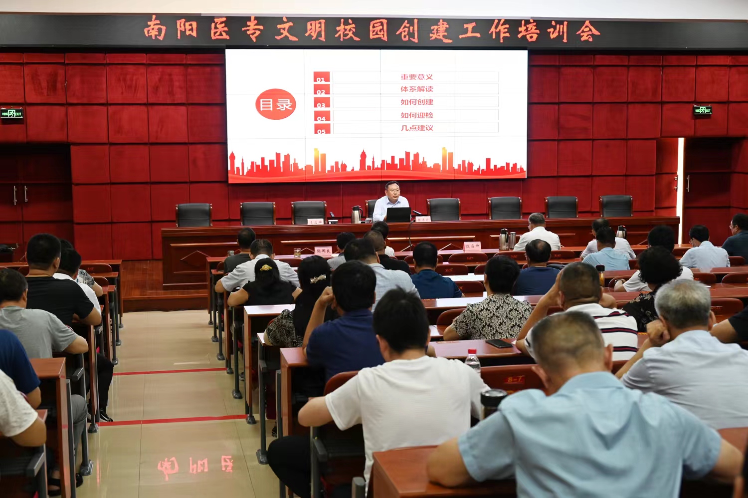 培训会后,逵应坤、张国良带领党政办、宣传部、纪委、总务处、保卫处、生活服务中心等部门负责人陪同张春晓实地考察了校园环境,张春晓对我校校园文化、绿化美化等方面给予了充分肯定,同时对存在的问题与不足提出了改进建议,特别指出要围绕医学文化、突出仲景精神、彰显校园特色。针对问题与不足,校领导即时提出整改意见,要求各相关部门及时制订整改工作方案与措施,充分利用暑假时间,做好各项创建提升工作。(编审/李红普 摄影/程安琪)