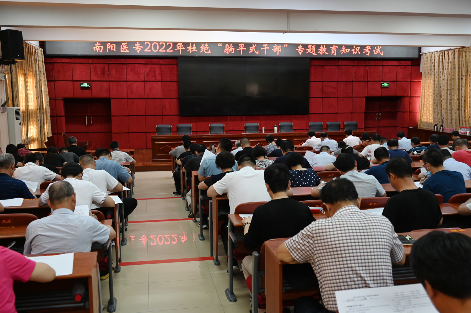 6月28日,学校在仲景西区图书馆5楼学术报告厅组织了杜绝“躺平式干部”专题教育闭卷考试,校本部中层副职以上干部和三所附属医院部分正科以上干部参加考试,时间为100分钟。本次考试由马克思主义学院出题、评卷,总体考试情况较好,无不及格现象。