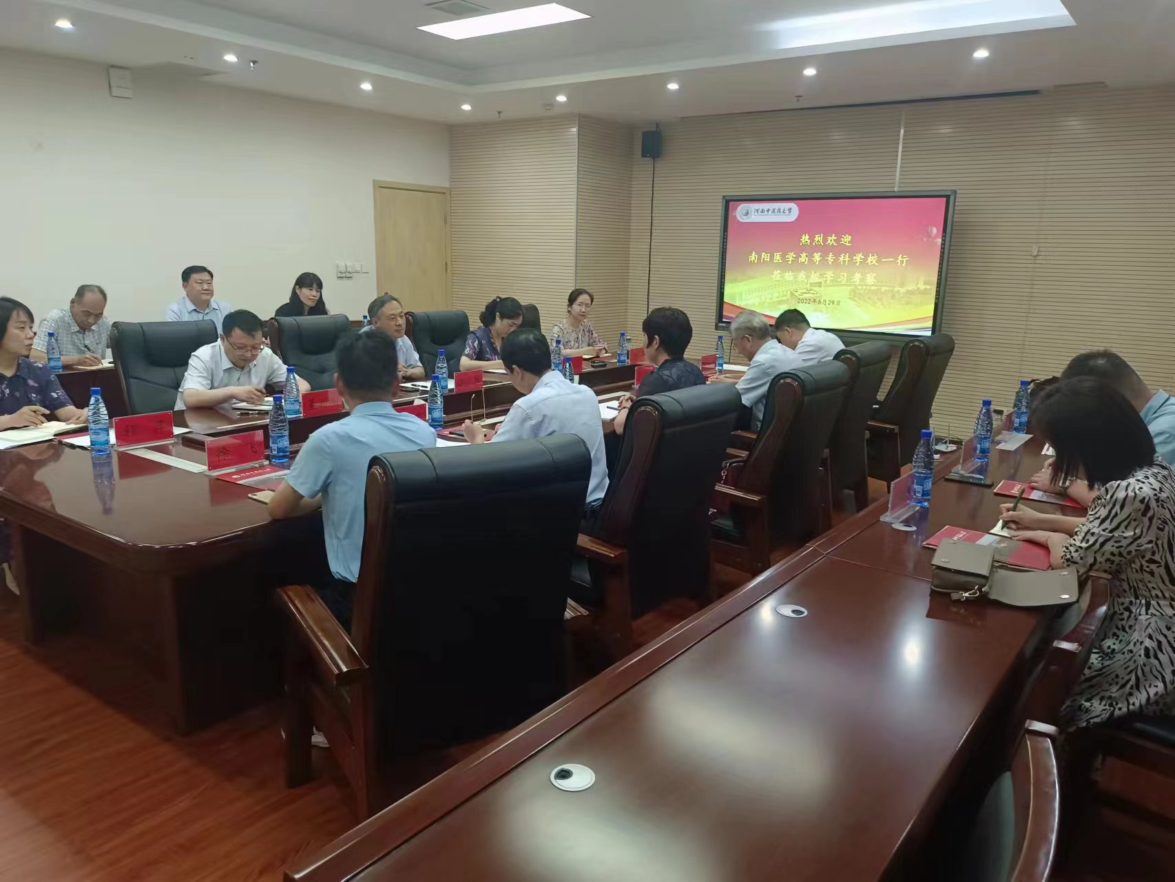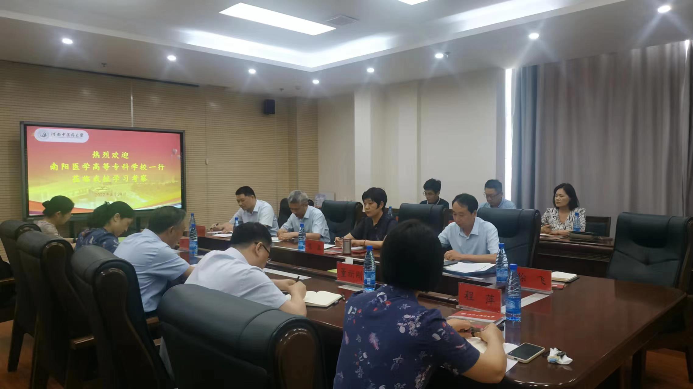 本网讯(文/外事处 范卫杰 周国军)为了学习兄弟院校在国际交流与合作、中外合作办学财务管理、师资队伍建设、临床教学管理、教学质量监控与管理等方面的经验,近日,副校长范真带领教务处、质量管理办公室、计财处、人事处、国际教育学院、对外交流合作处等部门负责同志,赴河南中医药大学、新乡医学院学习考察。