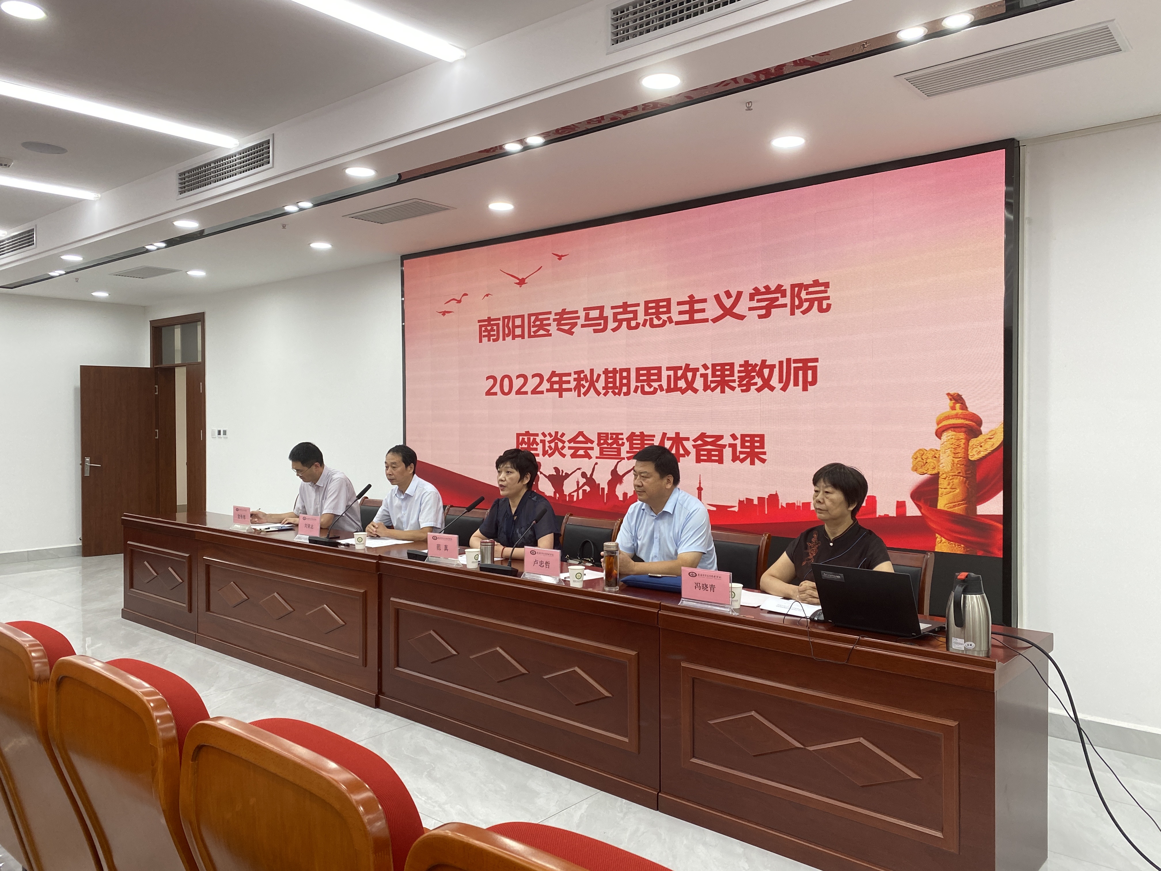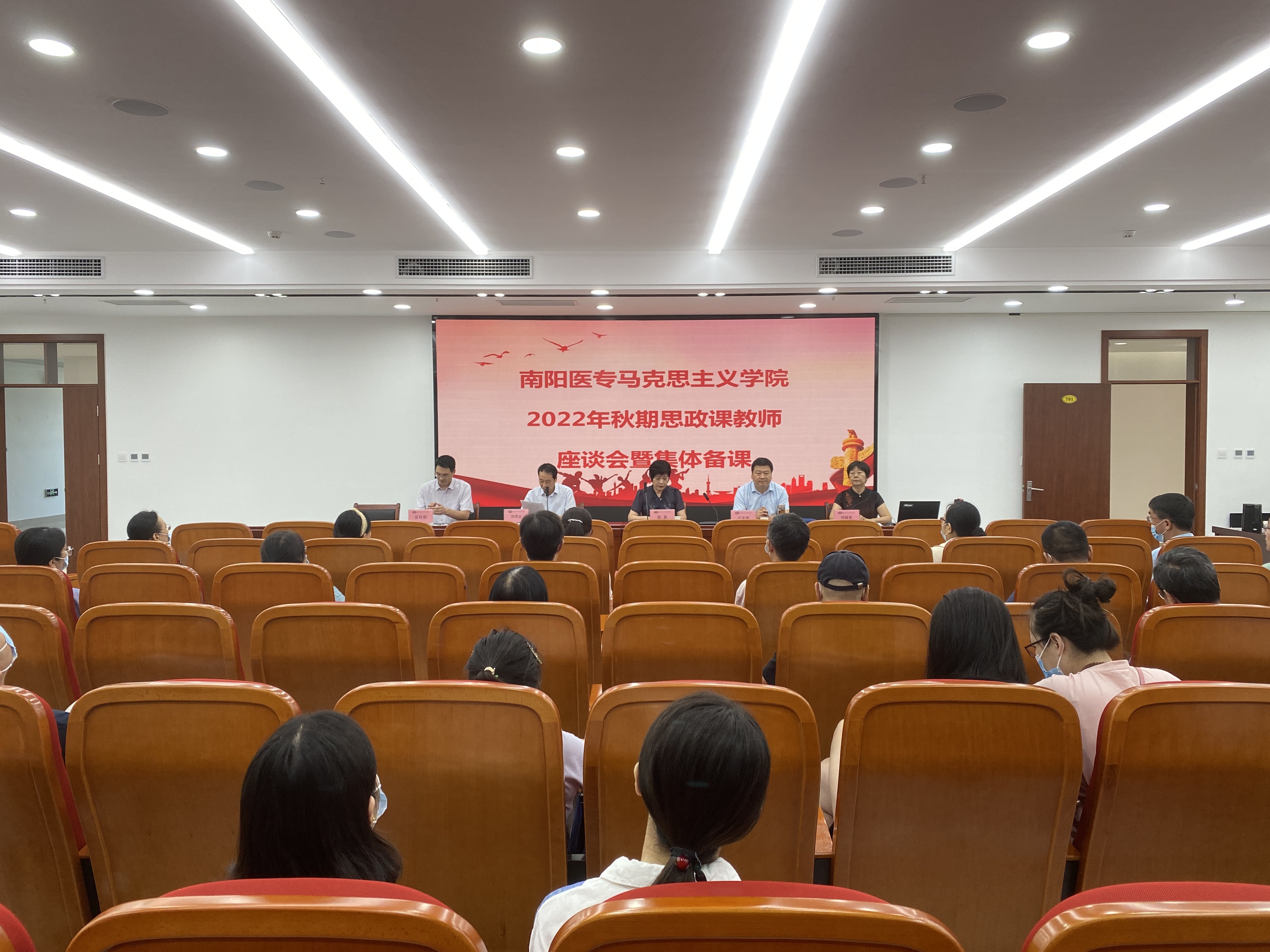 本网讯(文/马克思主义学院 卢孟)8月24日上午,马克思主义学院2022年秋期思政课教师座谈会暨集体备课活动开班仪式在仲景文化中心报告厅举行,市社科联副主席卢忠哲和校党委委员、副校长范真出席,马克思主义学院全体专兼职教师参加。会议由教务处处长刘荣志主持。