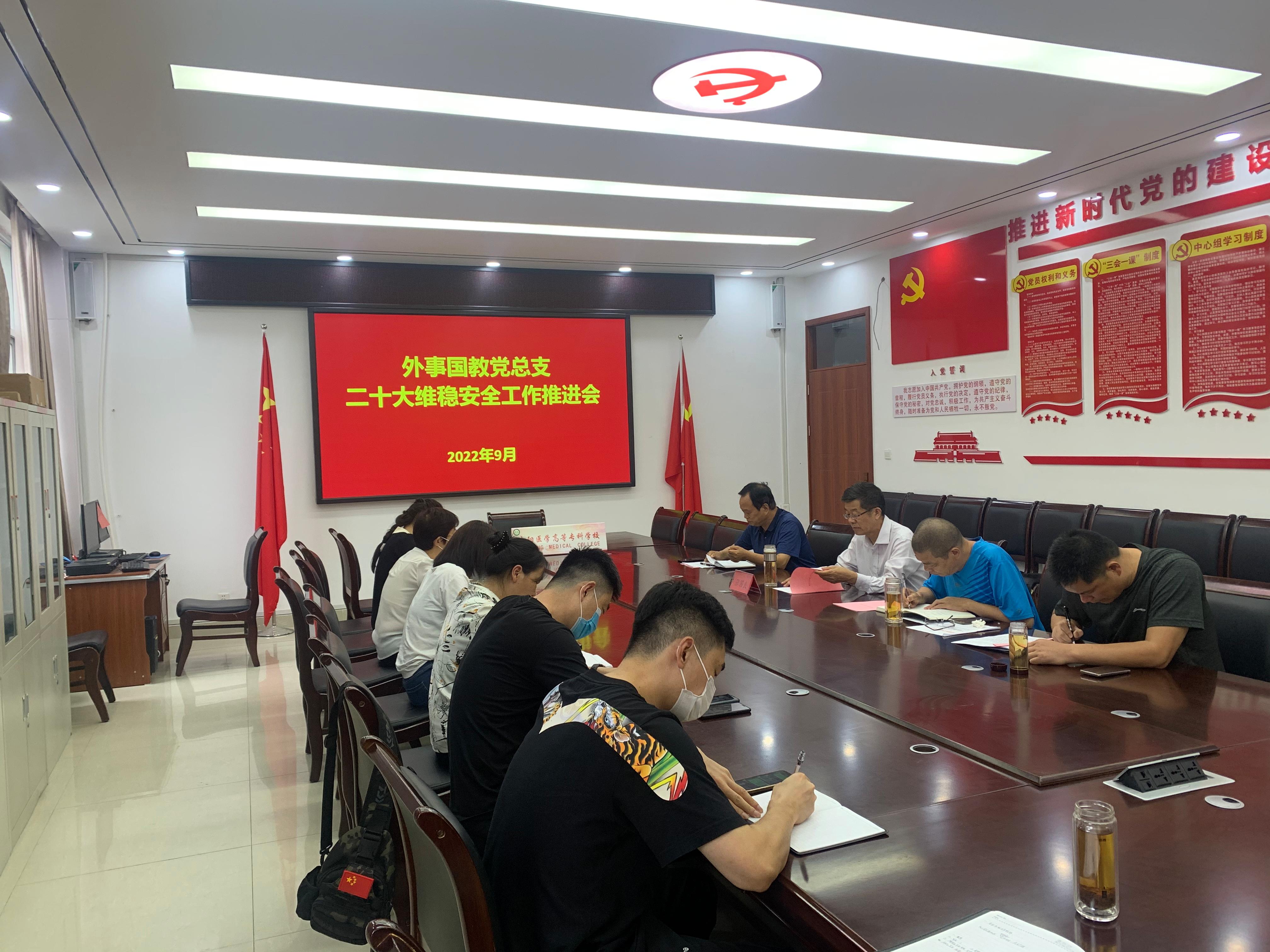 本网讯(文/国际教育学院 李斐)9月9日,外事国教党总支召开迎接党的二十大维稳安全工作推进会,就维稳安全工作进行再部署、再安排。副校长张国良出席会议,外事国教党总支副科以上同志参加会议。