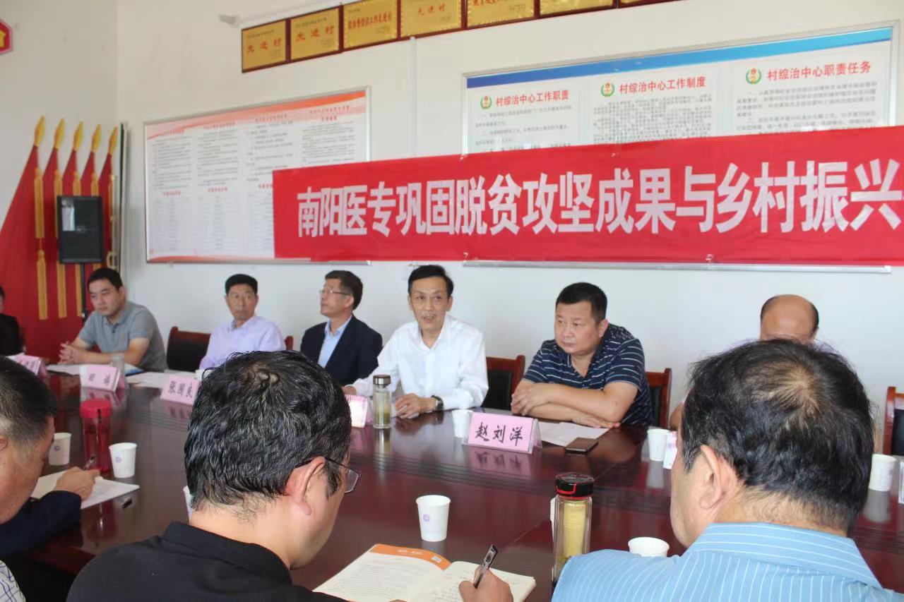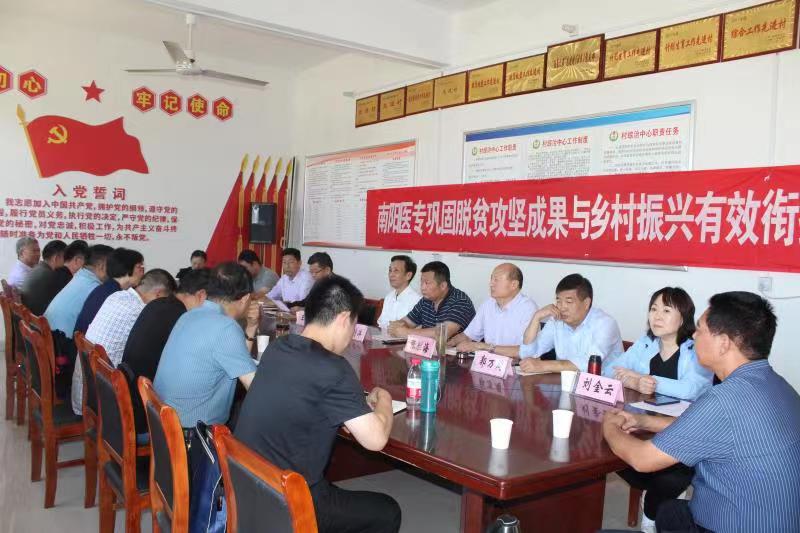 本网讯(文/组织部 邢富斌 武乐宁)9月28日,南阳医专校长王立义,副校长张国良、张胜海、郭万周,工会主席田端、纪委书记刘金云及学校帮扶责任人赴方城县广阳镇官坡岭村召开“巩固拓展脱贫攻坚成果同乡村振兴有效衔接”推进会,总结前段扶贫工作,部署下一步助力乡村振兴工作,进行新老帮扶队员入户现场交接。