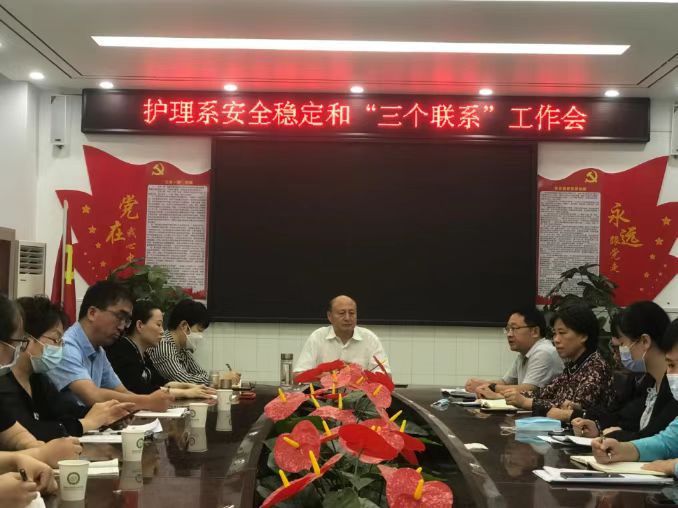 本网讯(文/护理系 何红丽)9月30日上午,校党委委员、副校长张胜海带领“三个联系”第四工作组深入护理系指导安全稳定工作,人事处、审计处、图书馆、档案中心相关负责同志陪同,护理系副科级以上干部及全体辅导员参加会议。