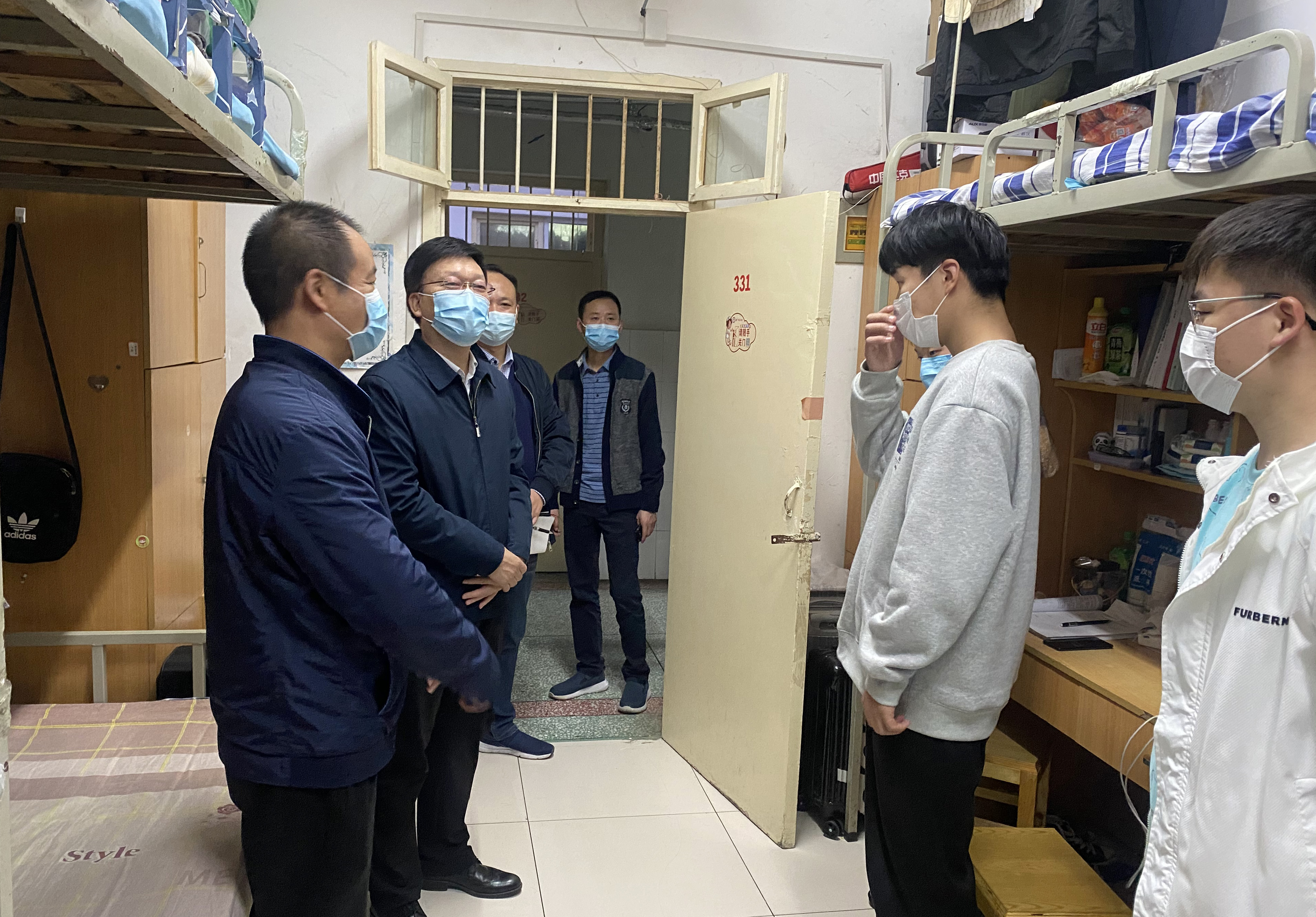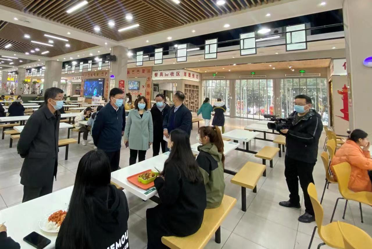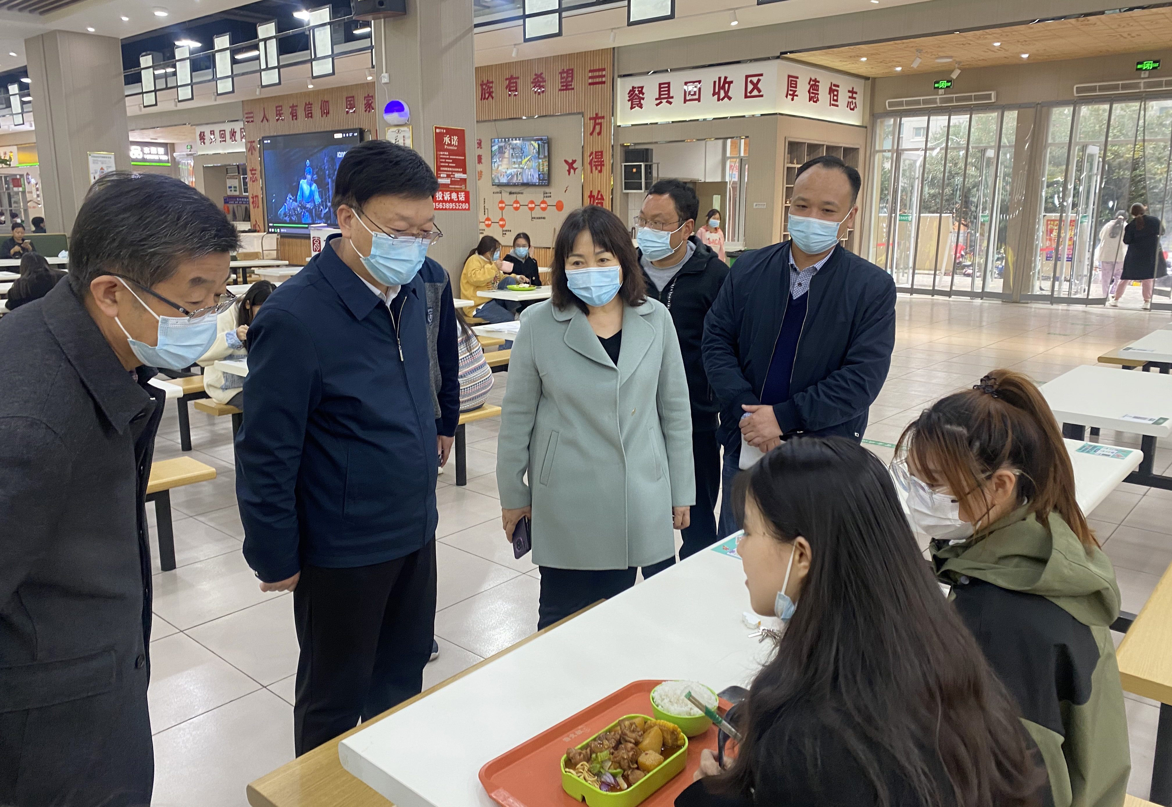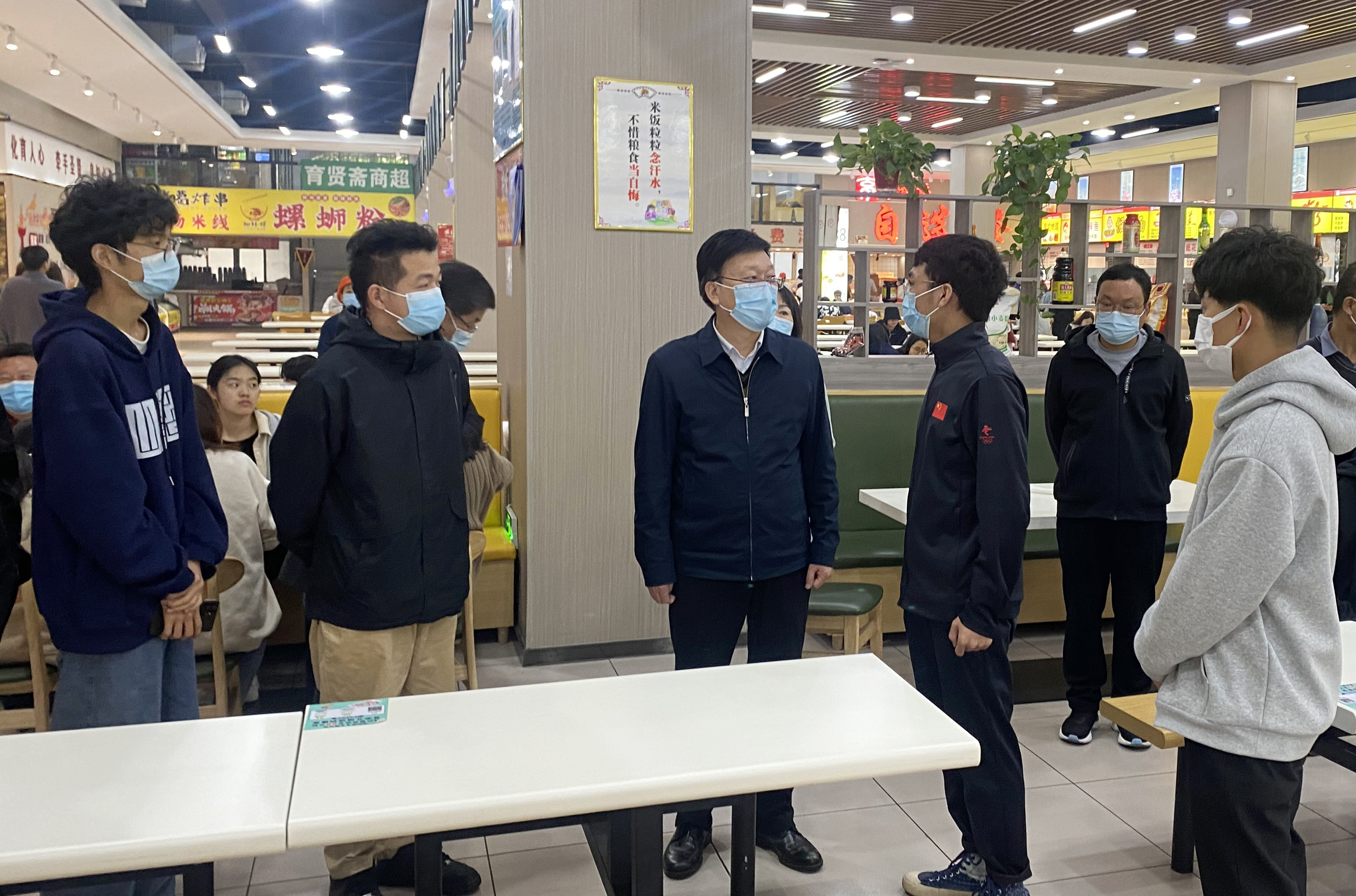 本网讯(文/党政办公室 刘辉)11月12日,学校党委书记柳明伟深入仲景西区学生餐厅、宿舍实地走访调研疫情防控期间学生学习与生活情况。校党委委员、副校长张国良,纪委书记刘金云及党政办公室、宣传部、总务处等部门负责人陪同调研。